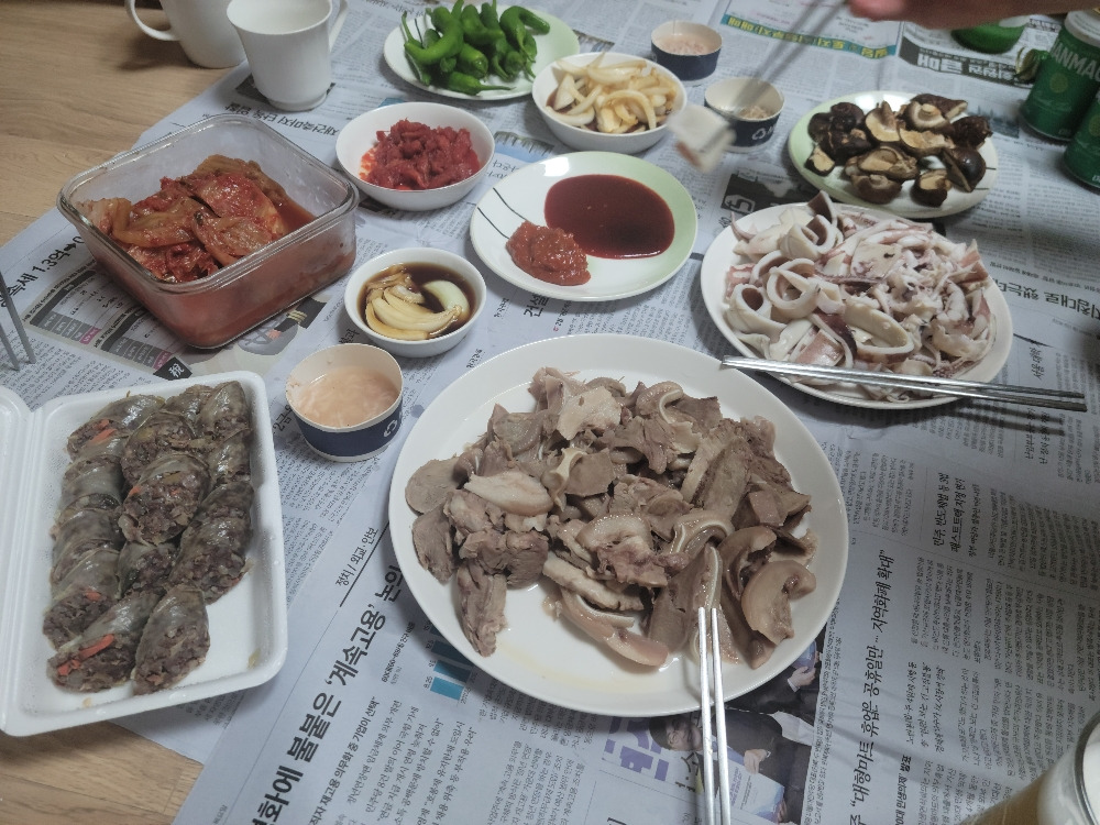 집에 돌아와 씻고 밥을 먹었다. 전날보단 단출했지만 좋았다. 새벽부터 시작한 긴 하루였기에, 오징어 숙회와 순대, 고기 안주에 오징어를 넣은 라면까지 끓여 먹으니 아주 든든한 한 끼였다.