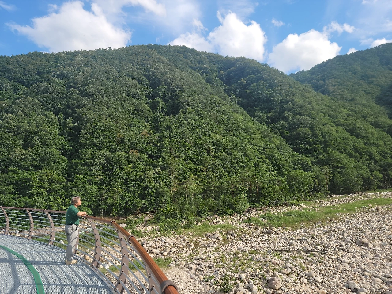 식사 후에는 이모부가 여행 첫날부터 내내 추천하신 "설악향기로"라는 곳을 가보았다. 대충 자연 경관 좋은 곳에 으레 있는 스카이워크 길이었습니다. 소나무 숲 사이를 20m 높이에서 걸을 수 있다- 이런 느낌이길래 좀 기대를 했지만 약간 겉핥기(?) 느낌이었고, 그래서 그늘도 없어서 살짝 힘들었다. 그래도 경관이 나쁘지는 않았다~. 근처 무슨 숙박촌이 있었는데 다 문 닫고 죽어가는 느낌이라서, 역시 관광 명소로 추천은 못하겠습니다. 약간 로토무 나올 것 같은 건물이 있었음. 설악향기로, 나쁘진 않았는데 나는 그곳보다 이모부를 더 좋아하는 걸로. 여기까지 하겠습니다. (대충 하나의 챕터를 할애하긴 애매해서 요약으로 넘긴단 얘기)