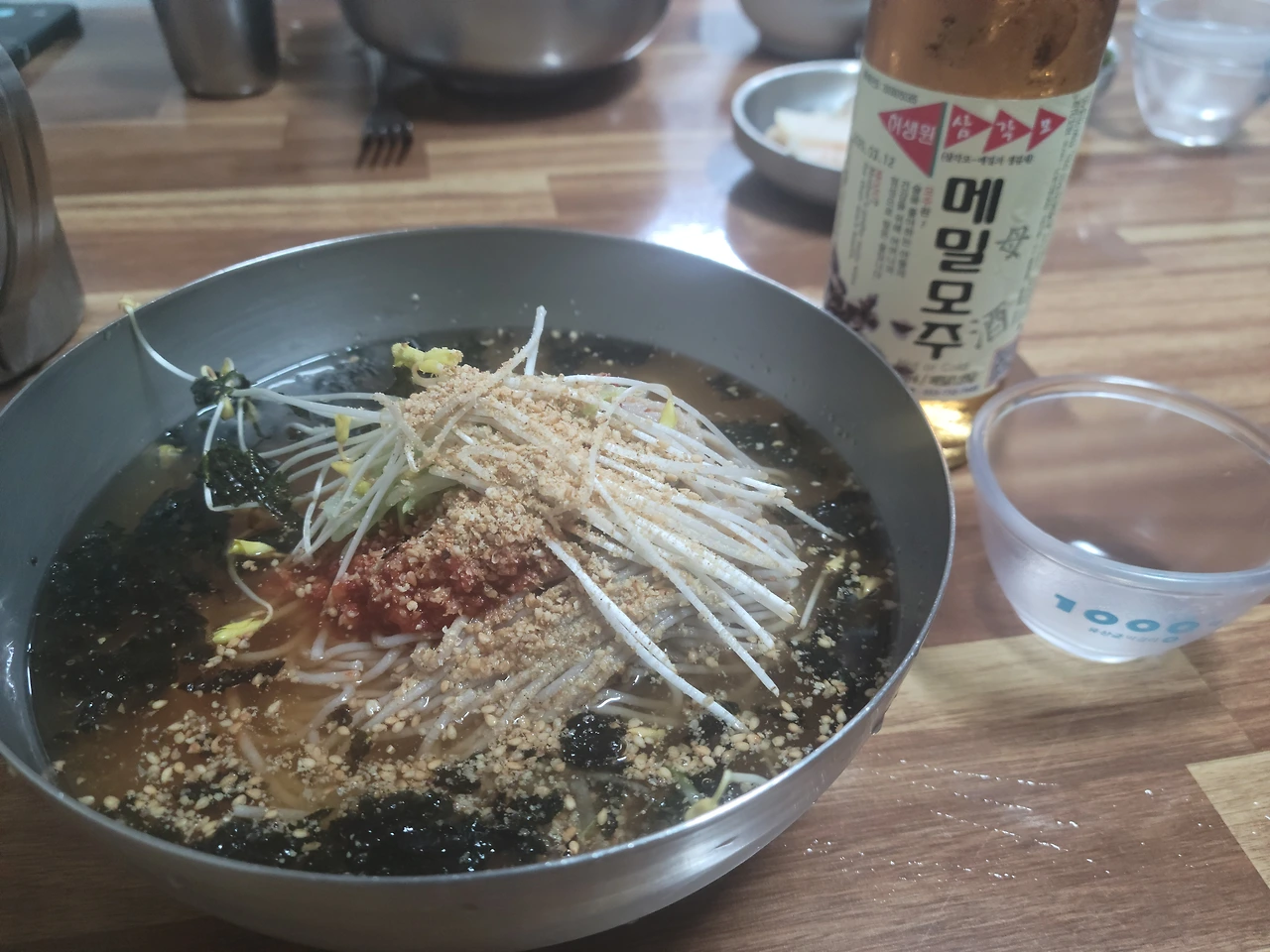 점심은 다시 시장 근처로 돌아와 "현대막국수"에서 먹었다. 메밀면 100%라고 하여 기대를 했는데, 확실히 일반 족발집에서 먹는 막국수와 맛은 달랐지만 그것이 더 입에 맞았는지는 모르겠다. 당면 같은 찰기가 아예 없고 면이 조금 거친 느낌이긴 했음. 다만 여기도 "모주"라는 걸 팔길래 설마 전주 모주랑 비슷한 건가 시켜봤는데, 훨씬 맛있었다. 도수도 11도면 나쁘지 않죠. 이게 술이지~