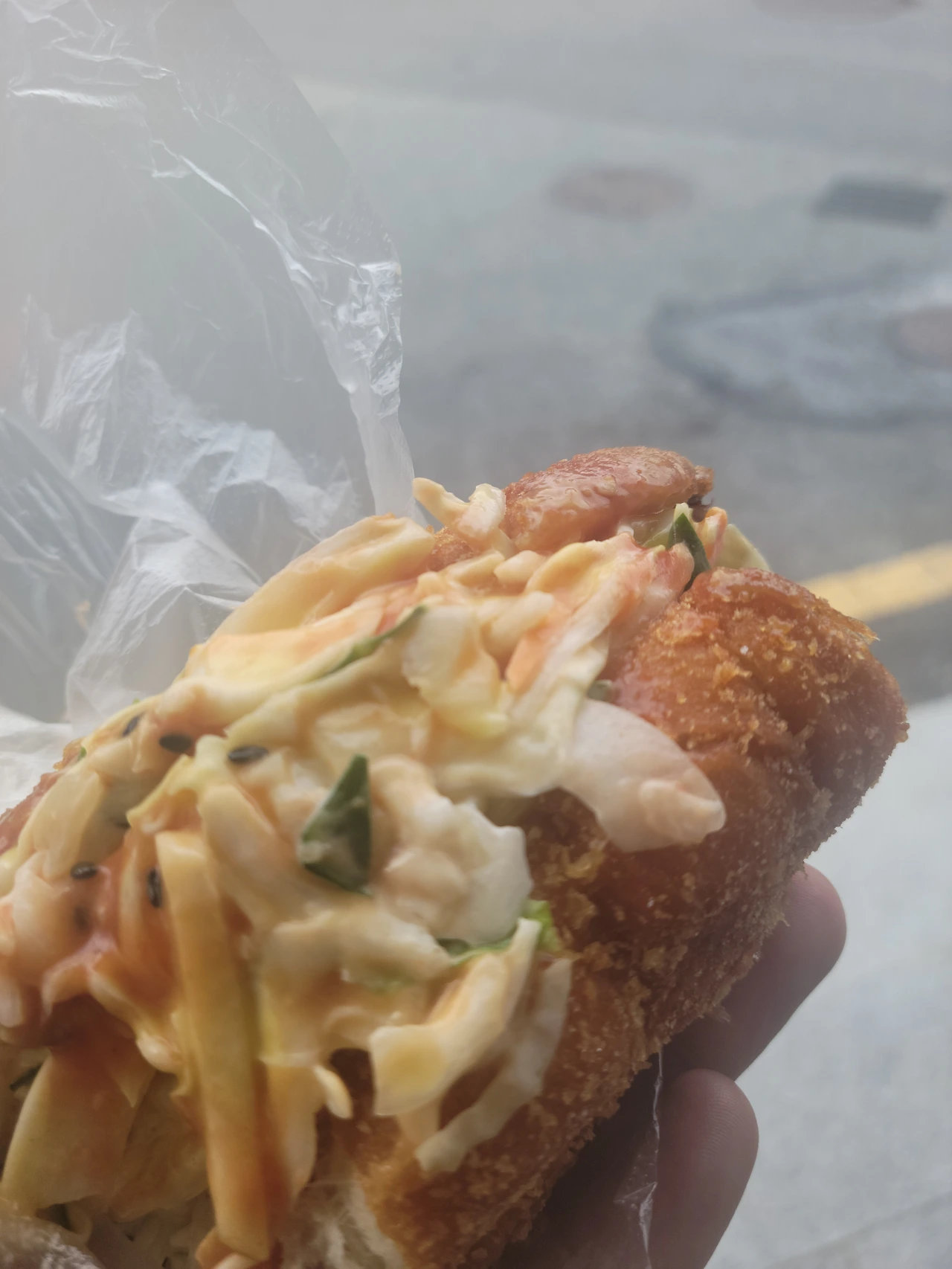 하얀집 옆에는 “행운분식”이라는 작은 상점이 있었는데, 사람들이 줄을 서서 무엇을 사 먹고 있길래 나도 따라가 보았다. 그 정체는 사라다빵. 도나쓰처럼 튀긴 빵 속에 두툼한 소시지와 투박하게 썰린 양배추가 들어 있고, 머스터드와 케첩으로 버무린 아주 클래식한 맛이었다. 대단한 맛까진 아니었는데, 왜 사람들이 줄까지 서가며 먹었는지는 의문. 그래도 사라다빵에서 기대하는 맛을 잘 구현해 놓았고, 회전율 덕분에 갓 튀긴 빵을 맛볼 수 있다는 점에서는 메리트가 있었던 것 같다.