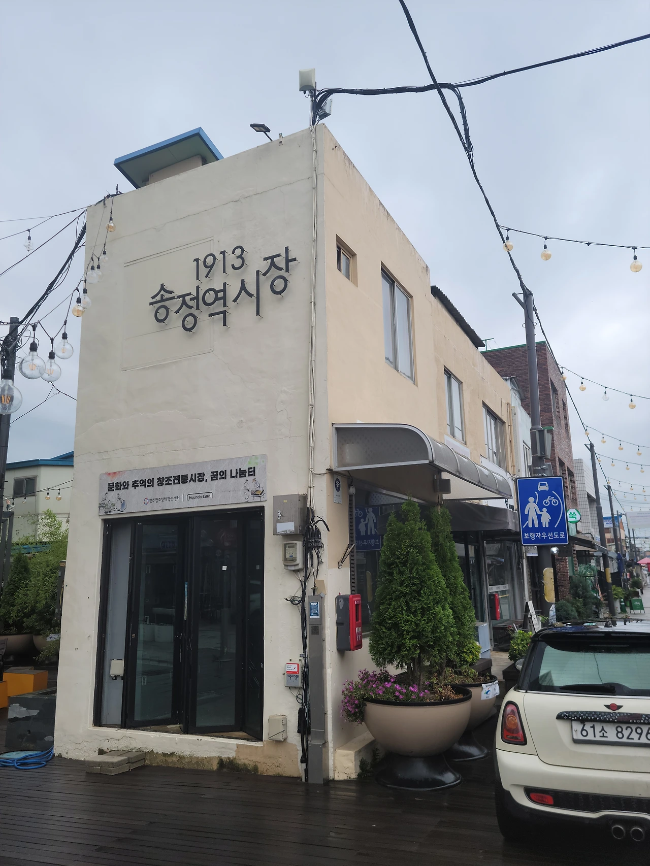 송정역에서 내렸을 때는 또 비가 잠시 그쳐있었다. 이때다 싶어 앞에 있는 시장도 구경했다. 1913 송정역시장이라고, 꽤 젊은 감성으로 꾸며놓은 시장이 있었는데 딱히 볼거리는 없었다. 다만 인상 깊었던 것은 한 닭집이 있었는데, 그 안에 진짜 살아있는 닭이 막 날아다니고 있는 거임! 지도를 열어 확인해 보니 정말 말 그대로 주문 즉시 닭을 잡아주는 생닭집이라고 하는데, 이 집의 통닭은 먹어보고 싶었다… 혼자 치킨과 곱창을 모두 먹기에는 무리라 아쉬웠다.