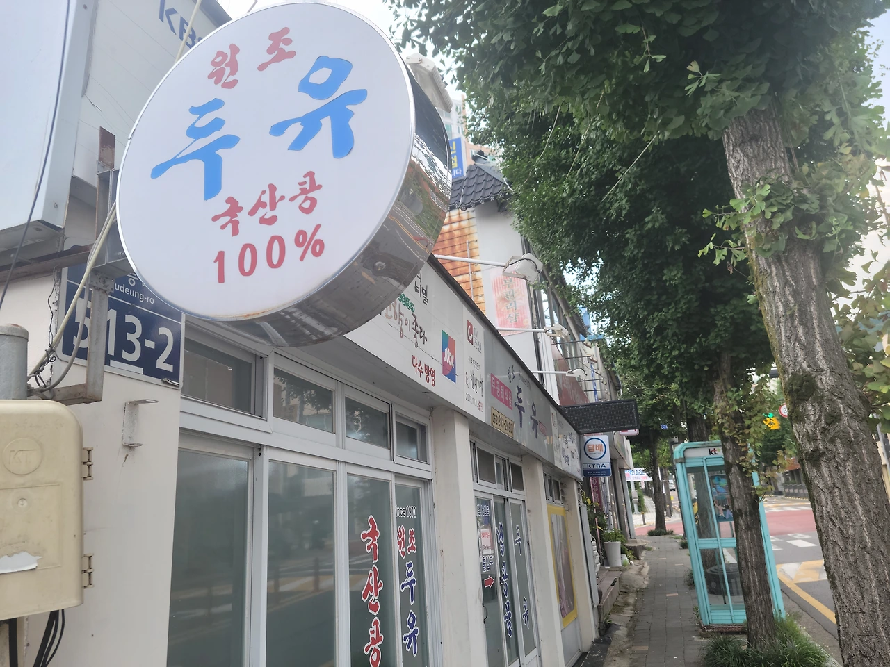 첫 행선지는 광주 동쪽 끝자락에 있는 "원조 두유"라는 곳이었다. 유튜브에서 보고 알게 된 집인데, 맷돌로 갈아낸 콩물이 진하고 고소하다는 평이 많아 꼭 가보고 싶었다. 마침 여름이니 콩국수도 한 번 먹어야지 싶었던 차였는데, 사실 국수보다는 시원한 콩물이 더 간절했다.