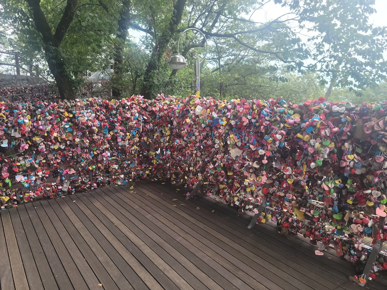 그래도 좋았다. 애국가 2절에 나오는 소나무도 만나고, 산성도 구경하며 오르다 보니 어느덧 남산공원에 도착했다. "이게 케이팝 데몬 헌터스에 나온 장소입니까?" 하며 관광객처럼 호들갑도 떨어보고, 팔각정이나 사랑의 자물쇠 같은 명소도 구경하면서 새삼 낯설어진 서울을 만끽했다. 마지막으로 남산을 올랐을 때 엄청나게 계단이 많은 길이 있었던 걸로 기억하는데, 그건 못 찾았다. 내려갈 때는 그 길로 가고 싶었는데... 물론 K가 허락하지 않았을 것이다. 내려가는 길은 버스를 탔다.