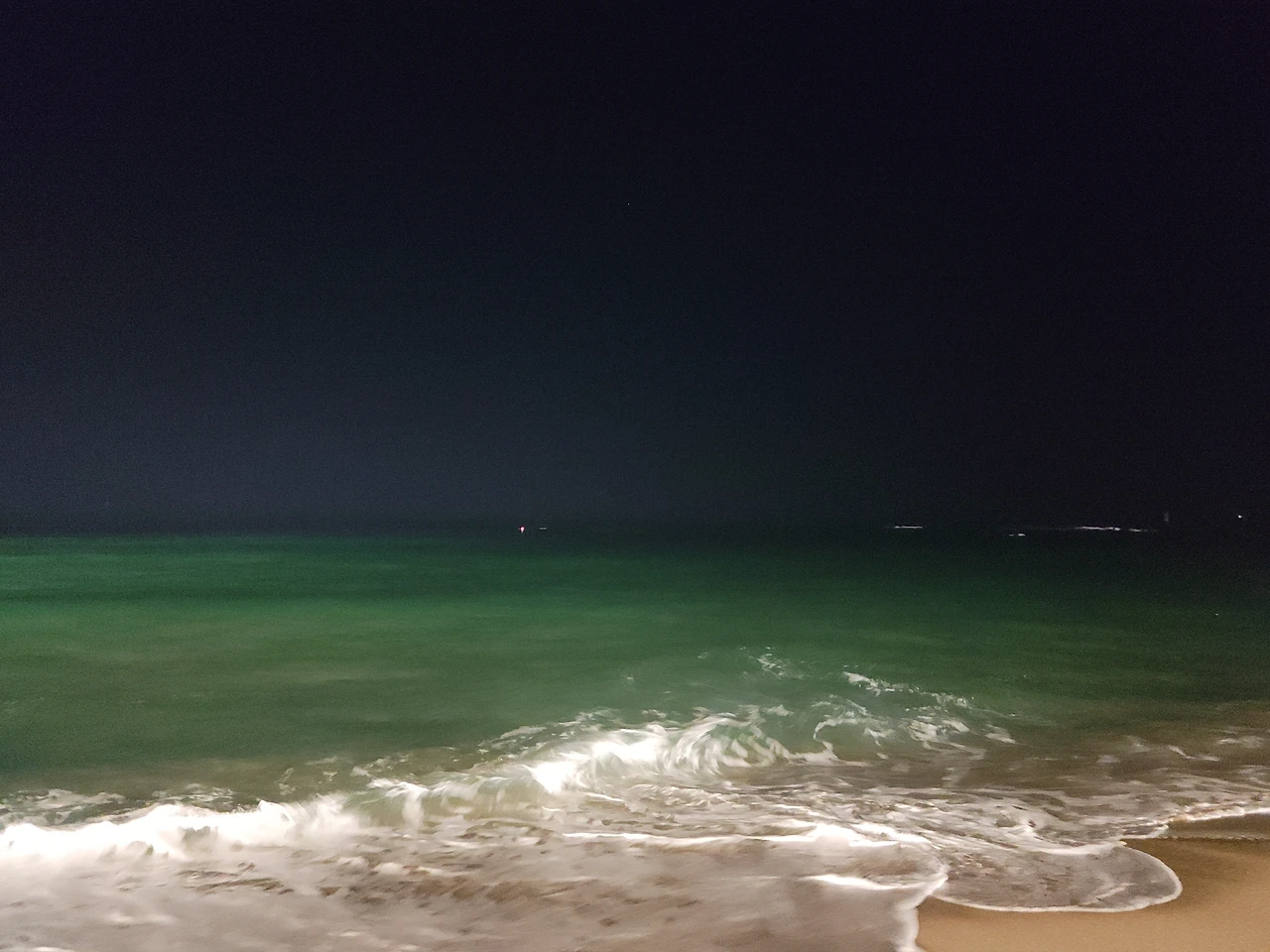 밤에 피자를 한 판 또 시켜 먹었던가, 그건 다음날이었던가. 무튼 배부르게 먹고 잠깐 산책 나가, 에메랄드색 바다도 구경하고, 발도 미리 담가보고. 그러다보니 밤이 깊었나. 방학이 끝나가는 슬픔도 내려놓고 흠뻑 기뻤나. 잠에 들었던 건 언제였던가. 그렇게 마지막 여행의 첫 잠이 지나갔다.