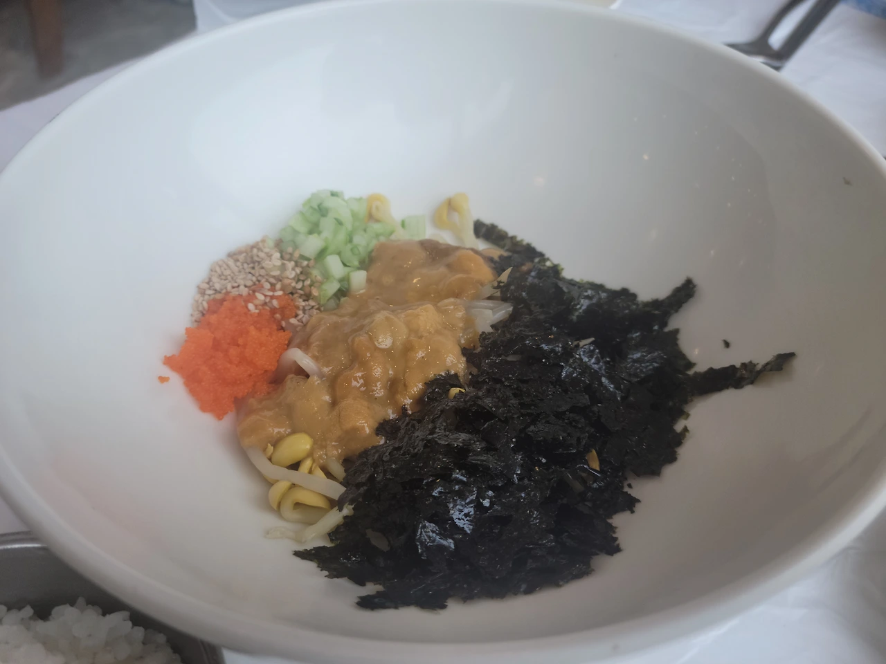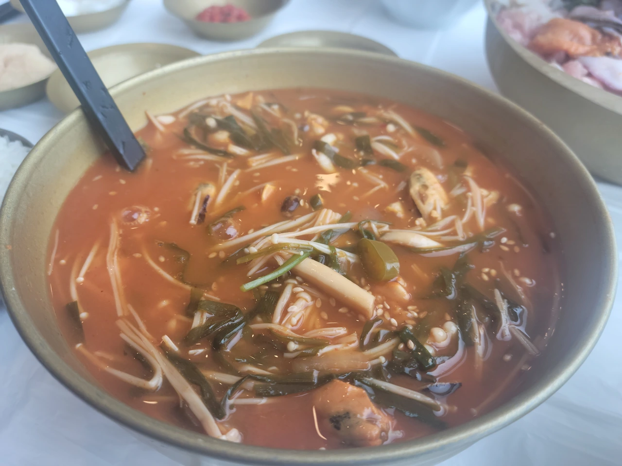 섭국은 매력있었다. 일단 빨간 국물이어서 일반적으로 생각하는 흰 국물의 홍합탕과는 다르고, 그렇다고 짬뽕에 가까운 것도 아니었다. 살짝 시원한 육개장 느낌. 차가운 물회와 번갈아 먹으니까 마치 냉탕과 온탕을 넘나들며 뛰노는 아이처럼 즐거웠다. 근데 이제 성게알 비빔밥은 조금 돈 아까웠음. 성게알이라는 식재료 자체가 오마카세에서나 만날 수 있는 고급 해산물이라는 건 알지만... 밥에 비비니까 딱히 그 성게알의 매력을 느끼지 못했다. (비비기 전에 한 번 먹어볼걸...) 22,000원이라는 가격이 일단 너무 사악하지. 이건 주문 실수로 하자.