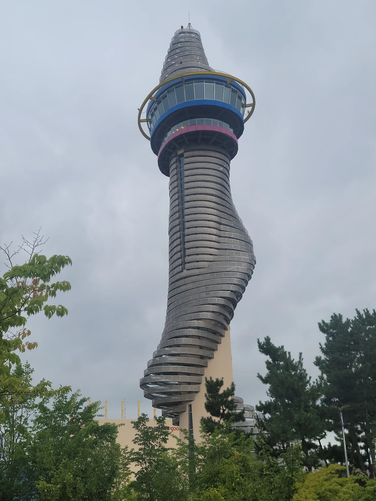 식사 후에 우리는 긴 산책을 하기로 했다. 사실 내가 가고 싶었던 서점이 있었는데, 그쪽으로 향하는 길에 구경거리도 많은 듯 해서 발길을 이끌었다. 먼저 청초호를 둘러서 한바퀴 걸었다. 걷는 동안 웬 갈치가 수영하는 듯한 높다란 빌딩을 보았는데, 이름이 '피노디아 엑스포타워'였다. 가까이서 볼수록 흉측해서 '후후, 대전 한빛탑 1승이다,' 라고 생각해버렸다. 에펠탑도 파리 만국박람회 때 지은 엑스포타워라면서요. 엑스포가 열리면 꼭 특이한 탑 하나는 지어야 하나보죠?