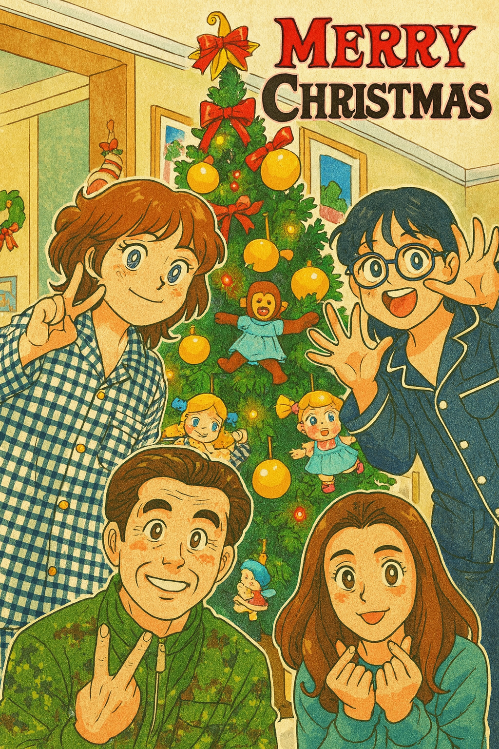 이때를 놓치면 안 된다며 큰 딸에게 윙크로 사인을 보낸 후 트리 점등을 위해 전원선을 연결하였는데...