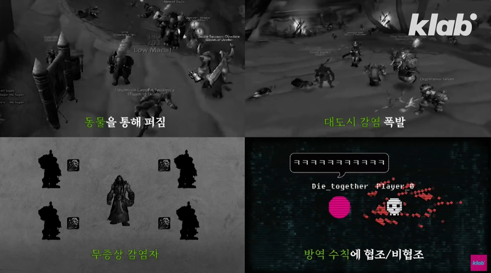 코로나 사건과 오염된 피 사건을 비교해보면 공간만 다를 뿐, 사건에 마주하는 사람들은 똑같이 행동했다는 것이다. 15년전인 2004년 '오염된 피' 사건 당시 WHO(세계보건기구)에서 게임사에게 해당 자료를 요청했을 정도로 가상 세계 속 유저들의 모습은 현실 세계의 사람들이 투영되어 있는 사회라는 것을 알 수 있다.
