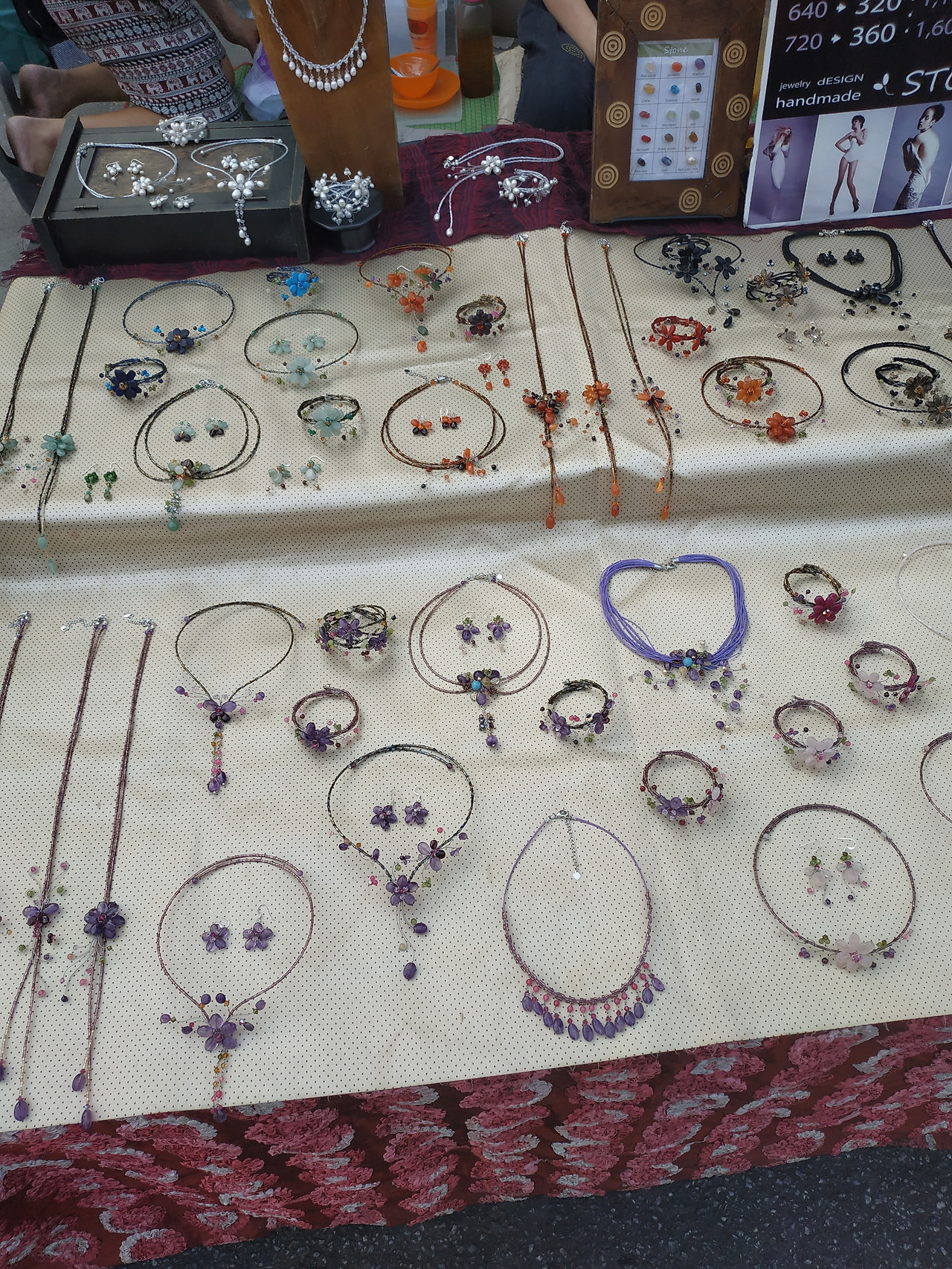 그러다 우연히 저녁을 먹은 식당의 주인아저씨가 근처에서 큰 야시장이 열린다고 해서 가게 되었다. 역시 구경 중에도 시장 구경이 제일이라고 사람들로 붐비는 사이로 야시장에는 특색 있고 아름다운 물건들이 많았다.