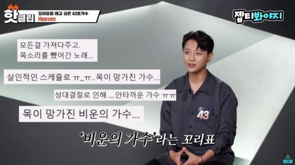 얼마 전 우연히 <싱어게인 2>의 한 무대를 보고 큰 감동을 받았다. 무명가수 43호로 나왔던 김현성 씨와 심사위원 분들 때문이었다. 프로그램에서도 밝히지만 김현성 씨는 성대에 무리가 갈 수 있는 노래 더불어 무리한 스케줄로 인해서 가수 활동을 멈출 수밖에 없었다.