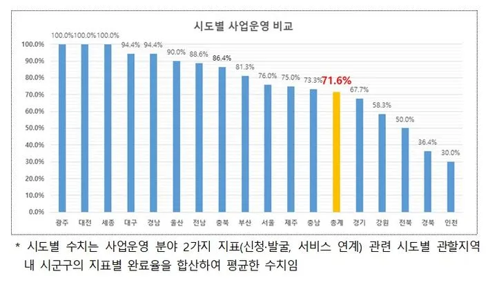 신청·서비스 연계 등 사업 운영 관련 두 가지 지표에선