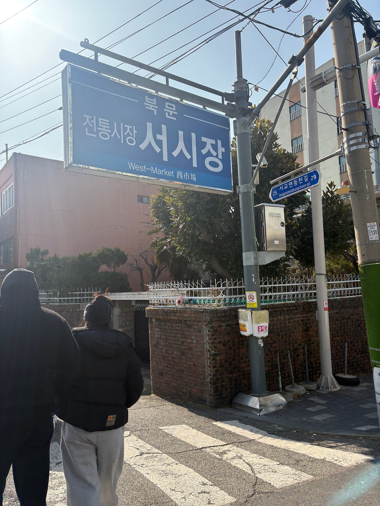 GM이 친구를 만나고 있는 동안 나는 서시장에 들러 장을 보았다.