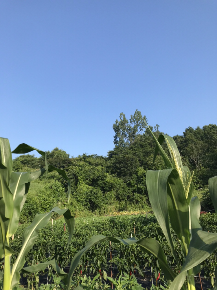 요란하게 옥수숫대를 넘기며 태풍이 지나간 사이 호박잎은 한 뼘 더 커지고 쭉쭉 뻗은 넝쿨 사이로 주먹만 한 호박이 보이기 시작했다. 풋고추들도 하나 둘 발갛게 익어가고 오이와 가지는 매일매일 마중을 나가는 수고를 해야 한다.