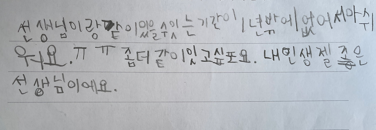 잠시 쉬려 한다. 힘들었던 감정은 잘하고 싶은 욕심이 앞섰기 때문일지도 모른다. 아주 조용한 한 친구가 남기고 간 편지글이 마음을 두드린다. 나를 사랑하는 아이들에게 고마운 마음으로 반응하지 못하고 정 반대의 아이들에게만 너무 신경을 쏟은 건 아닌지. 그게 다 내 욕심은 아닌지. 내 시선을 다시 한번 돌아본다. 늘 묵묵히 있던 이 녀석이 이런 말을 남길 줄은 몰랐다.