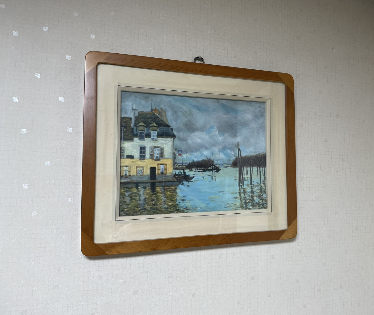 모조리 버려두고 가면 폐기물 수거비가 어마할 것 같았다. 낡은 좌탁과 수납장, 전자제품, 그리고 구석에 박혀 있던 물건들을 당근에 올렸다. 사용도 않던 당근 앱이 바빠졌다. 어떤 것은 싼 가격에, 어떤 것은 나눔으로 올렸다. 추억이 있는 물건들 중 이별하면서 뭉클했던 물건은 내가 유화를 배우며 처음으로 완성했던 모작이었다. 아버지가 직접 표구작품으로 만들어주신 내 그림을 누가 관심이나 가지려나 싶었지만, 버리기는 싫어 당근에 올렸더니 7초 만에 당근이 울렸다.