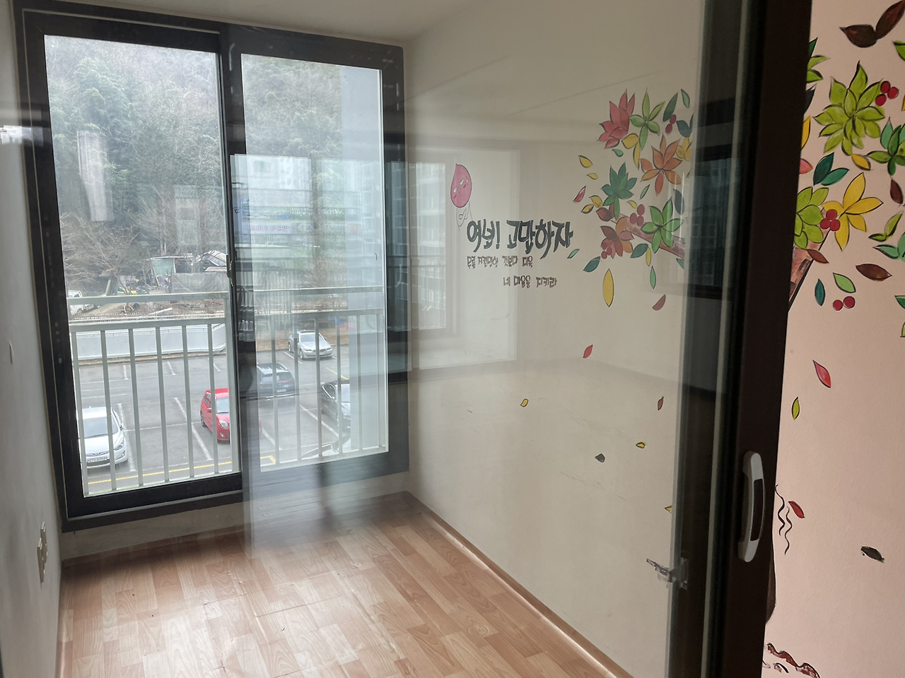 이삿짐을 서비스 업체에 맡기고 공간을 둘러보며 이 공간에 가득한 시간들을 떠올렸다. 세월만큼 낡은 종이장판의 흔적조차 왠지 뭉클했다. 행거를 치우자 드러난 벽면을 보고 빵 웃음이 터졌다. 컴퓨터 앞에서 많은 시간을 보내는 남편에게 싫은 말 못 하고 벽화로 남겼던 서른 즈음의 내가 귀엽다.