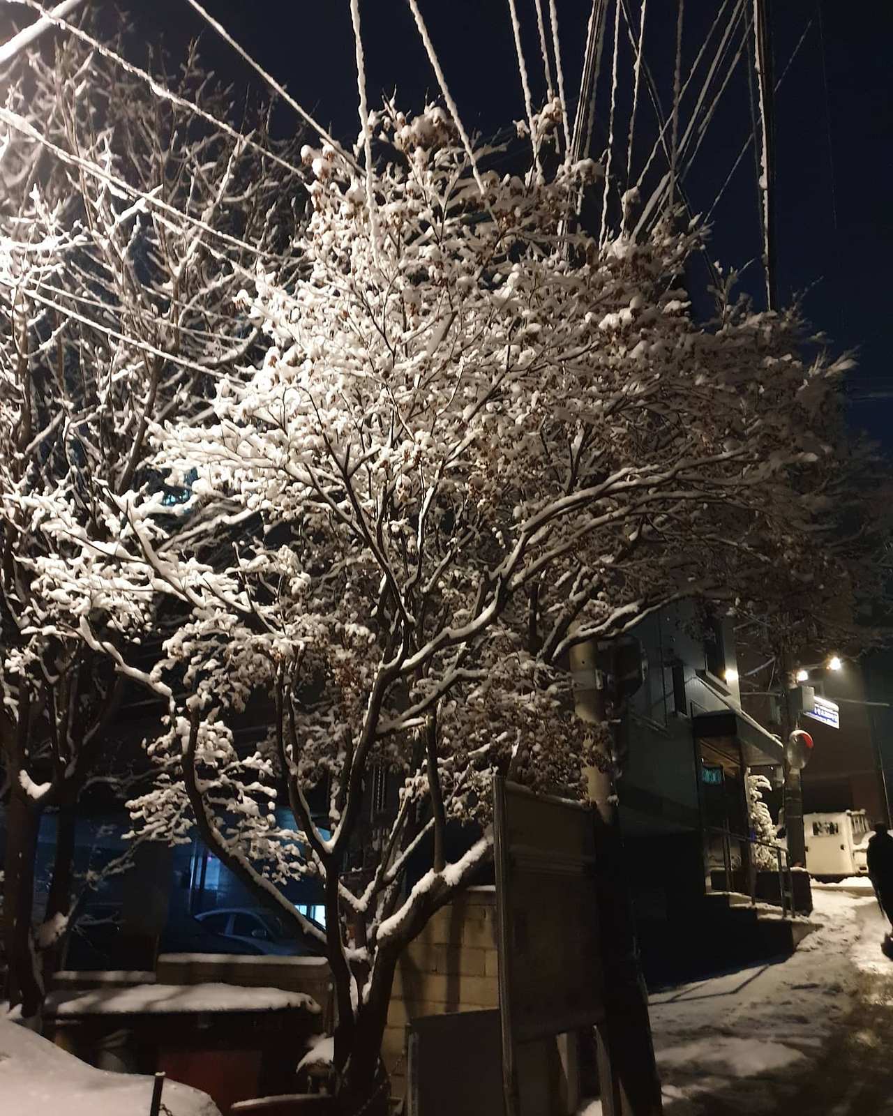 지하철을 타고 사당역에 내려 다시 버스를 갈아타고 까치고개 중턱에서 내려 집으로 가던 중 내눈에 벗꽃의 아름다움이 보였다. 물론 나뭇가지에 눈꽃이 핀 것이지만 팍팍한 요즘 내 눈에는 그 눈꽃을 벗꽃으로 보여지고 싶었나보다. 보는 사람의 관점과 내가 생각하는 표현에 따라 눈꽃도 될 수 있고 번꽃으로 보여질 수도 있겠지만 나는 벗꽃으로 보고 싶었다. 그래서 사진을 찍었다. 은은한 가로등 불빛이 공허한 내 마음을 눈꽃을 벗꽃처럼 보이게 했을 것이다.