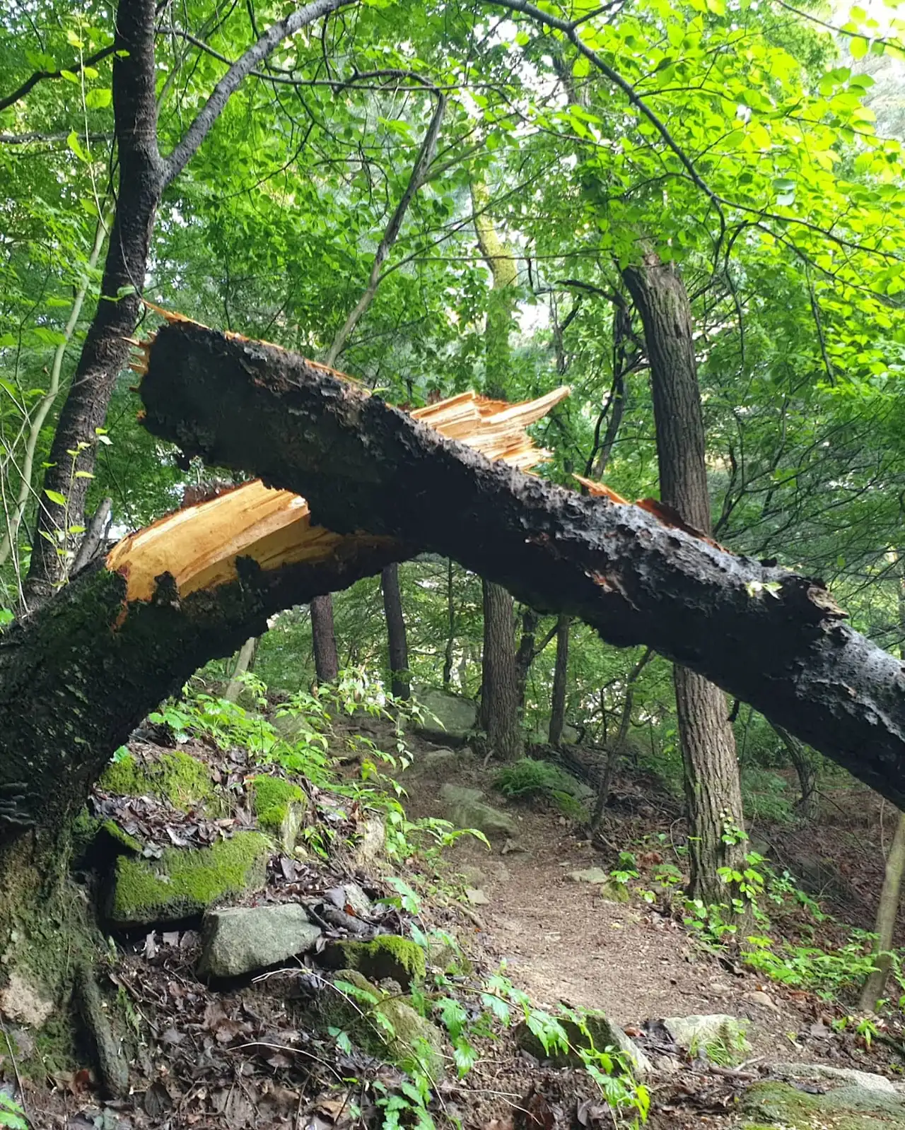 어쩌면 (과유불급)욕심이 과하지 않았나 생각도 된다. 그냥 위로 반듯이 자라는 나무도 세월이 흐르고 주변환경과 안맞으면 죽거나 부러지는데 옆으로 비스듬히 자라잡고 있으면서 내 몸뚱이보다 더 큰 몸통을 하고 한없이 옆으로 뻗어있는 나무 밑을 늘 지나다니면서 토닥거려 줬는데 몸집을 스스로 너무 불리고 욕심이 과했나보다. 부러진 나무를 보니 안타깝기만 하다.