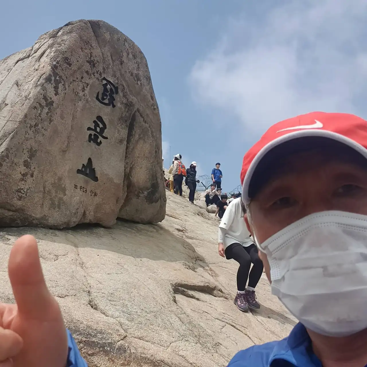 간단하게 인증사진을 찍고 내려오려고 하니 젊은 한 팀이 사진을 찍으려 한다.