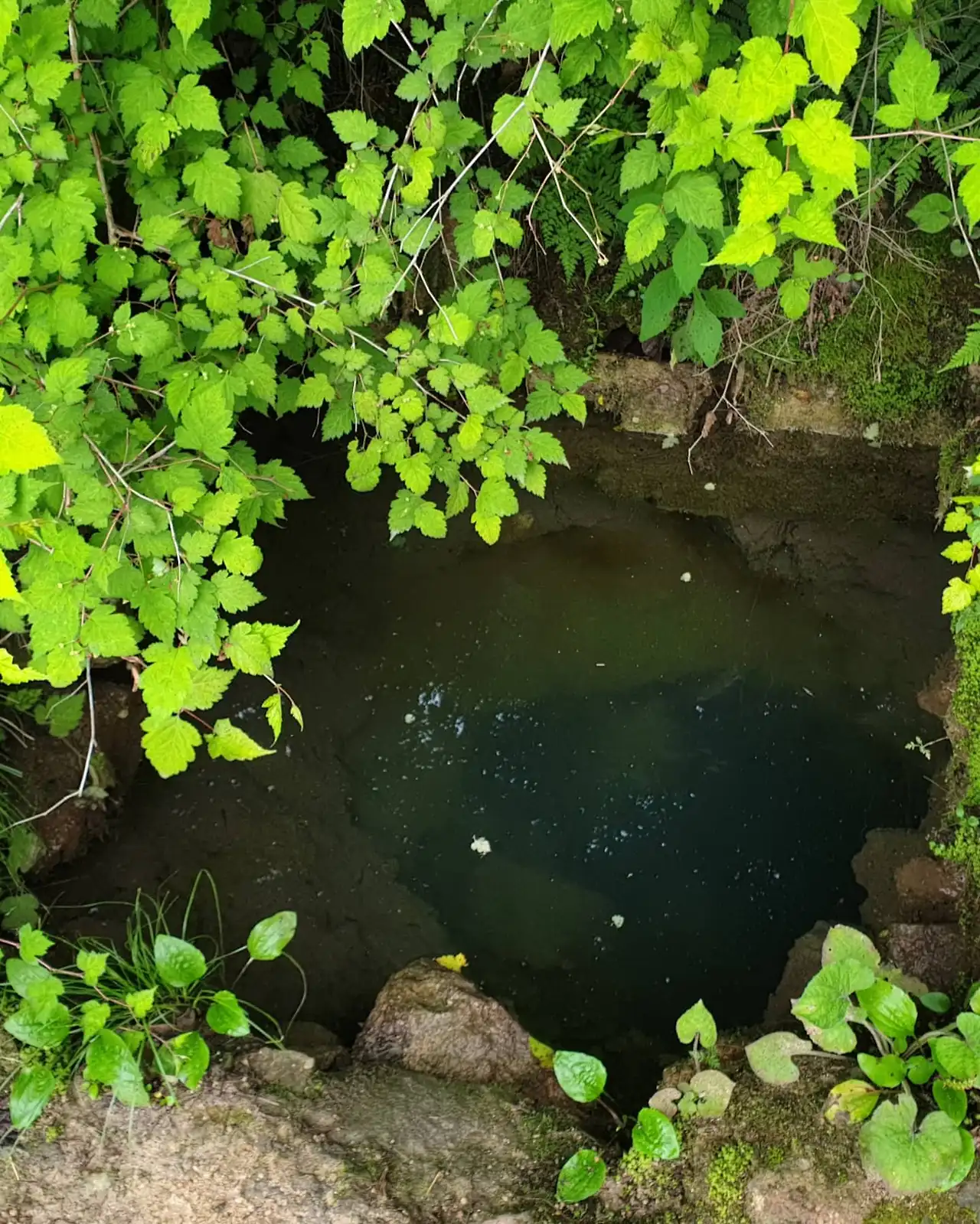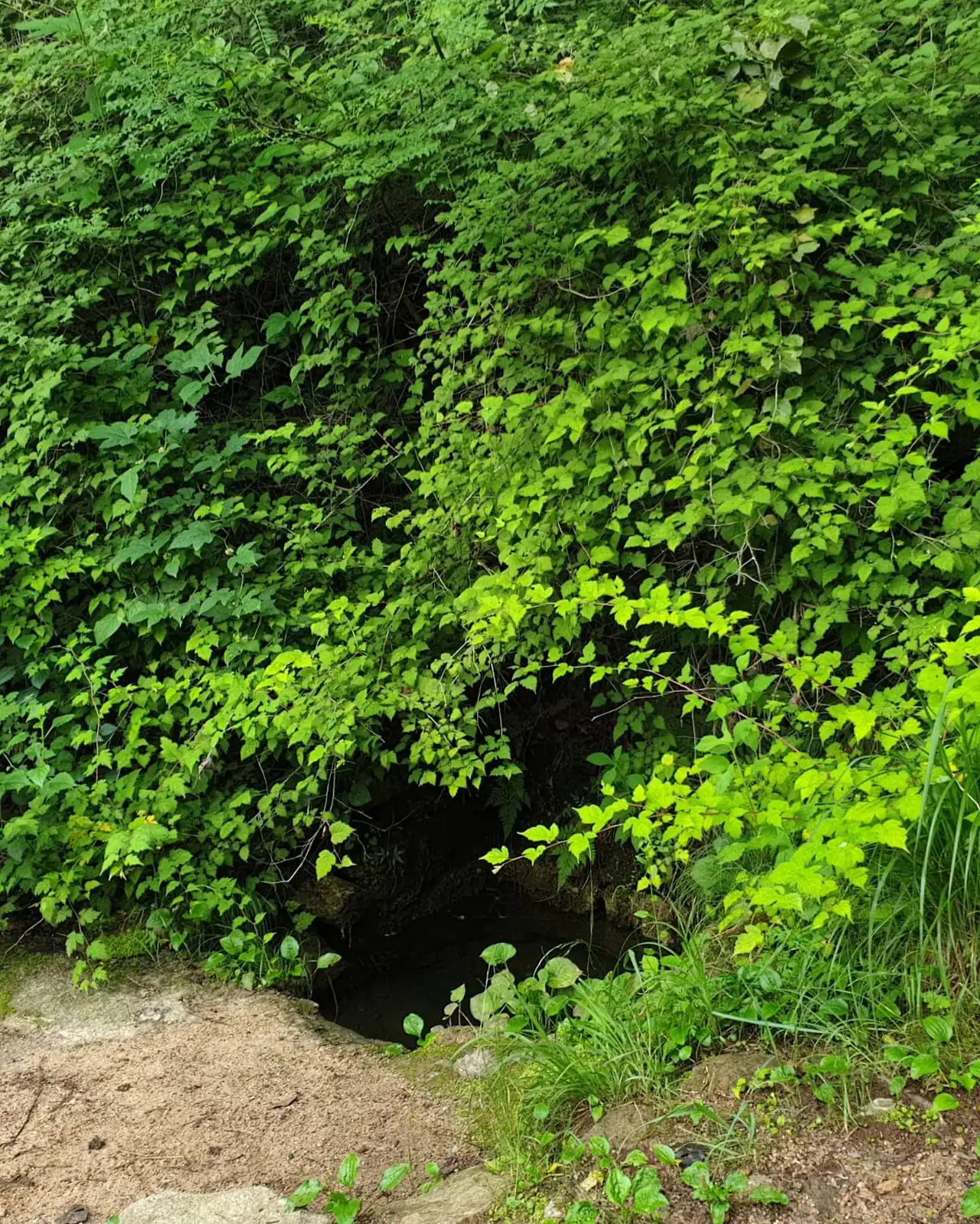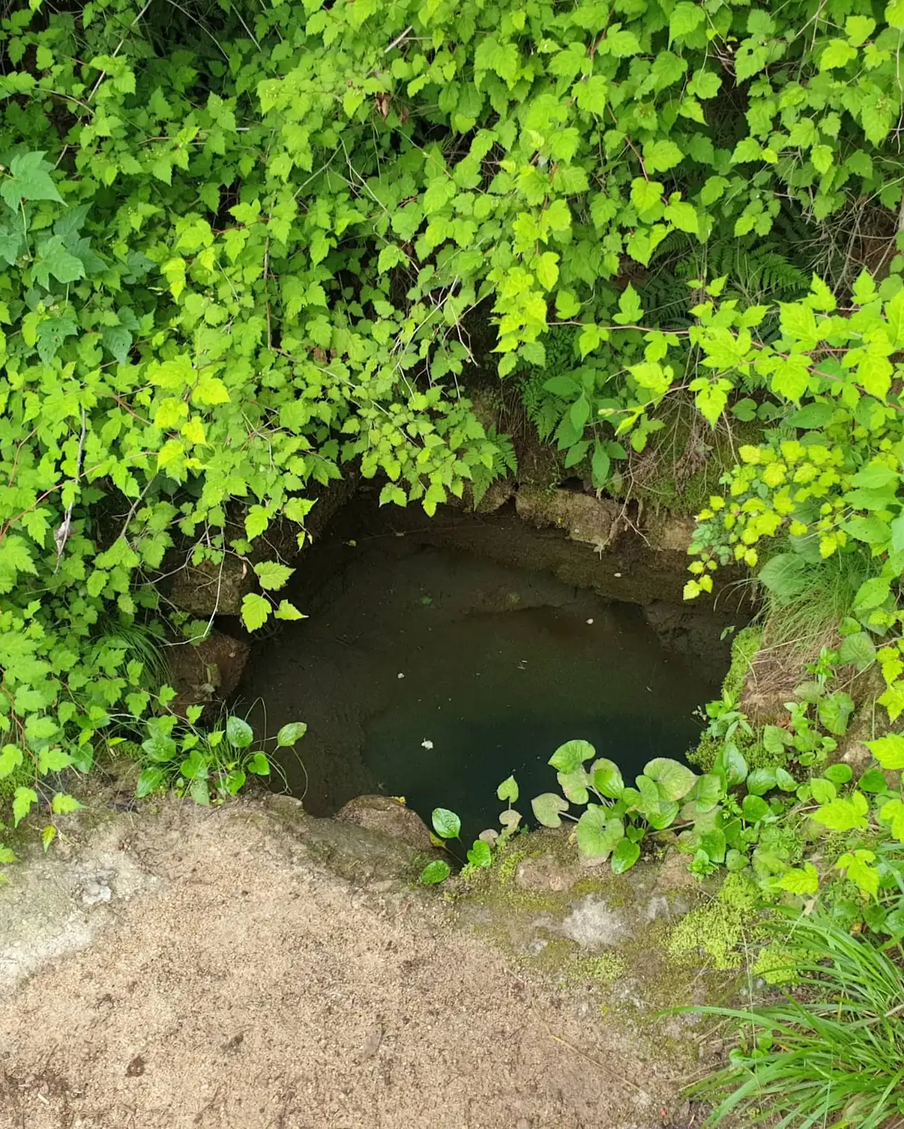 장마가져서 주변에 물이 흘러 넘치는데도 이 샘은 그져 살짝 더 수위가 높았다가 만다.