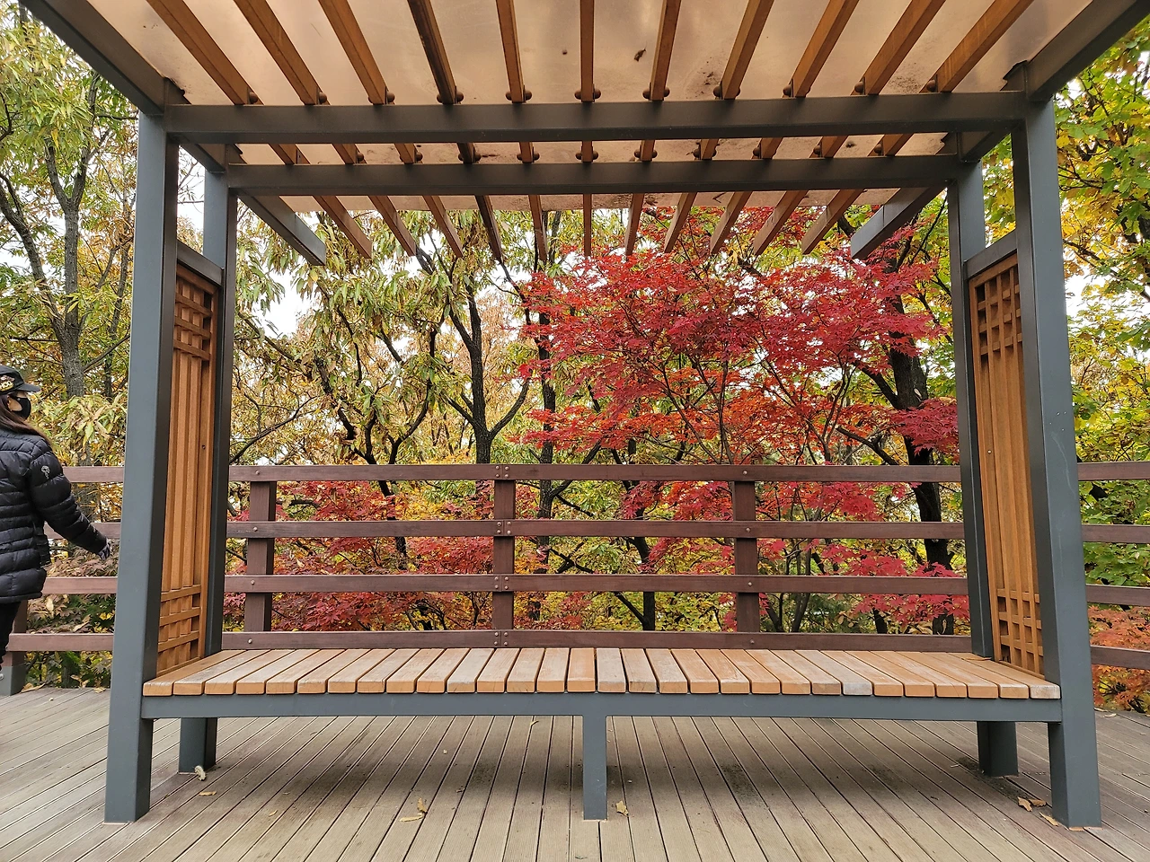 정자 뒤에 수놓은듯 단풍이 병풍처럼 정자를 더 고즈늑하게 만들어 줍니다.