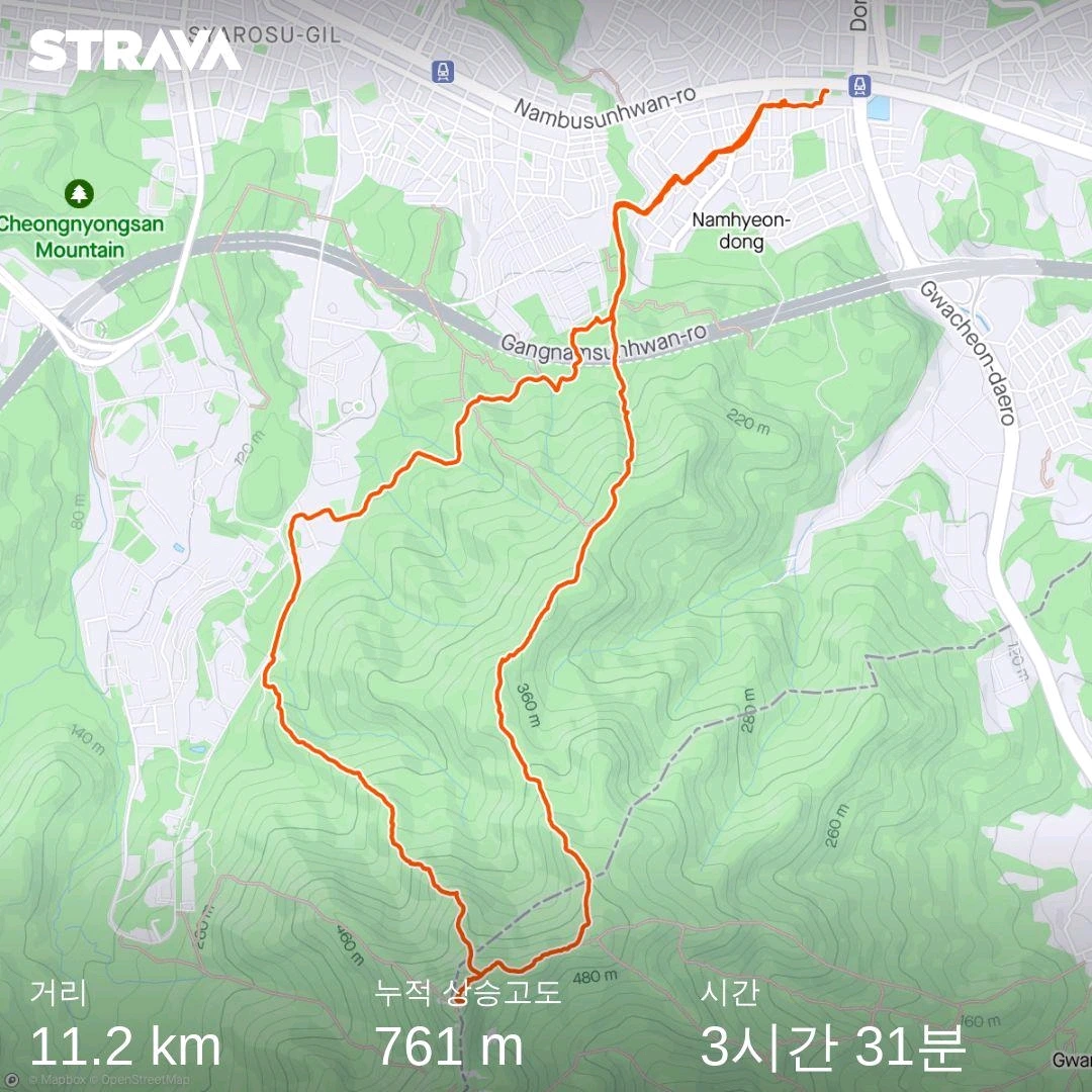 가지고간 찹쌀떡을 꺼내서 하나씩 먹고 가방에 넣어간 내 생수를 나눠서 먹고는 잠시 쉬었다가 사당역쪽으로 내려왔다.