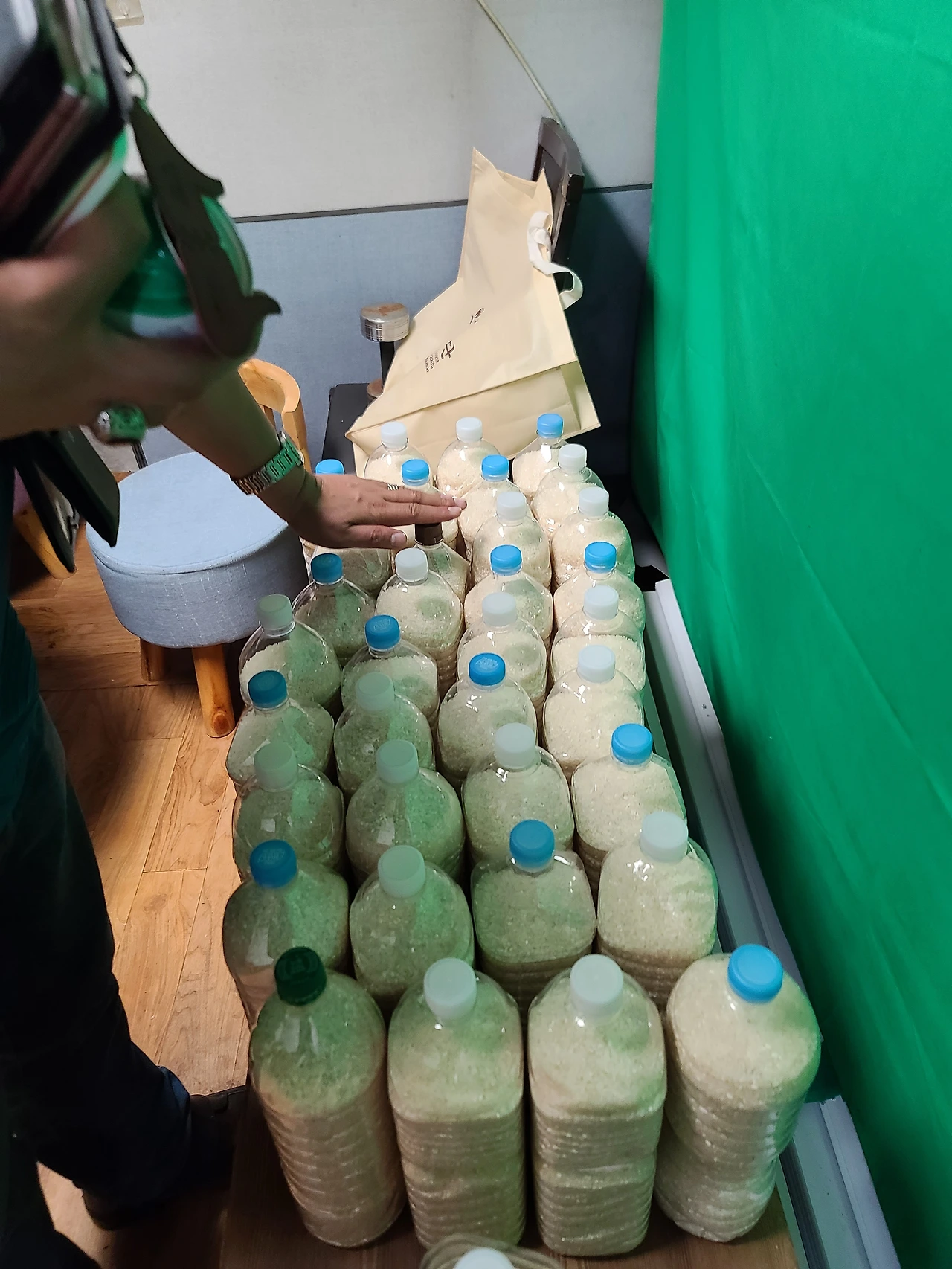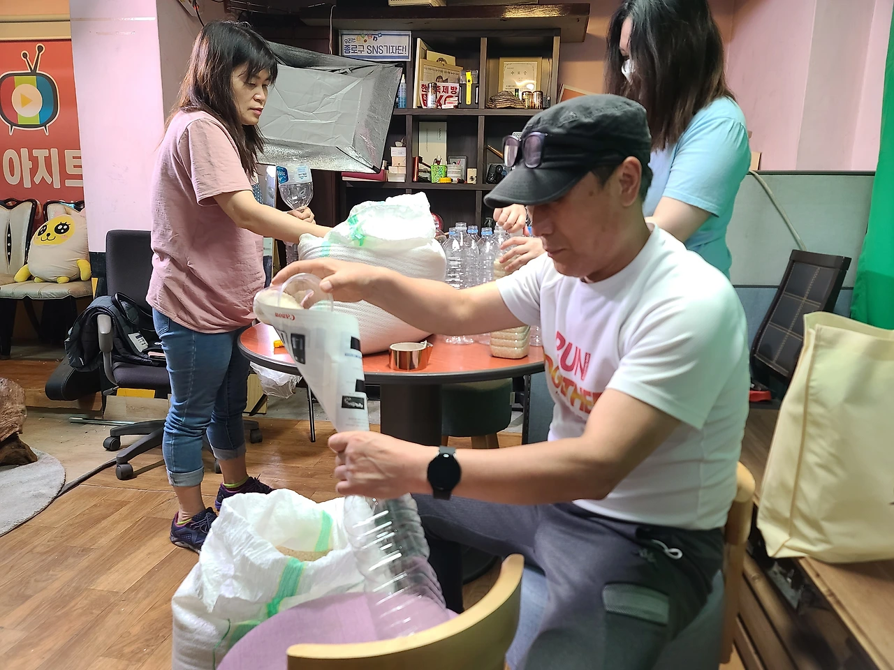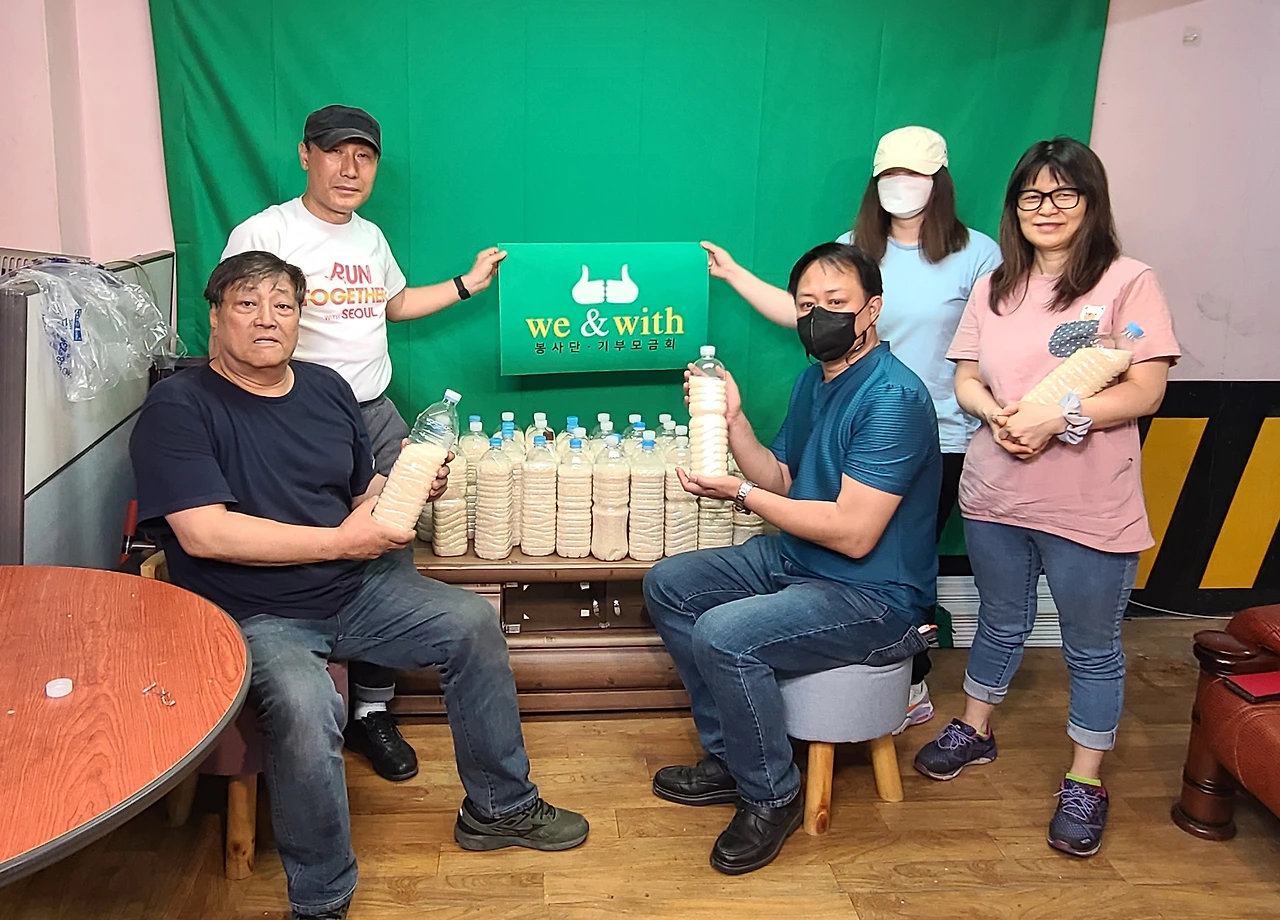 성수동에서 미싱사업을 하시는 제혜경님과 자녀분과, 종로 아지트TV 추인권 홍보팀장님과 함께 2리트 생수통에 쌀을 가득 넣어 앞으로 이호현회장께서 주변 동내방내를 돌며 사랑의 쌀을 나눠주시기로 했습니다.