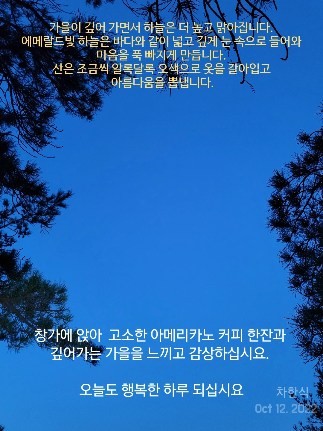 가을은 어느센가 내 눈 앞에서 오색의 색으로 갈아입고 보랏듯 자태를 뽐내는것 같습니다.