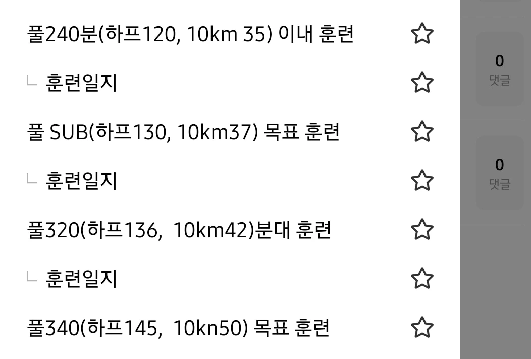 지도방식은 철저하게 카페(온리인)으로 하되 매주 4일(월. 수. 금. 토(일))의 훈련스케줄을 올려드립니다.