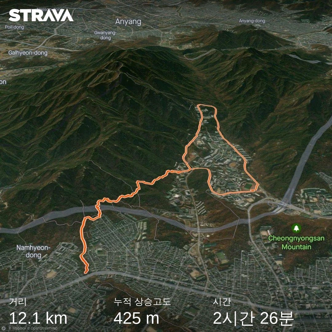 그래서 목표를 수정했다. 연주대 왕복하면 얼추 12km되는데 서울대 외곽을 돌자 이 코스도 결코 평지가 아니다.