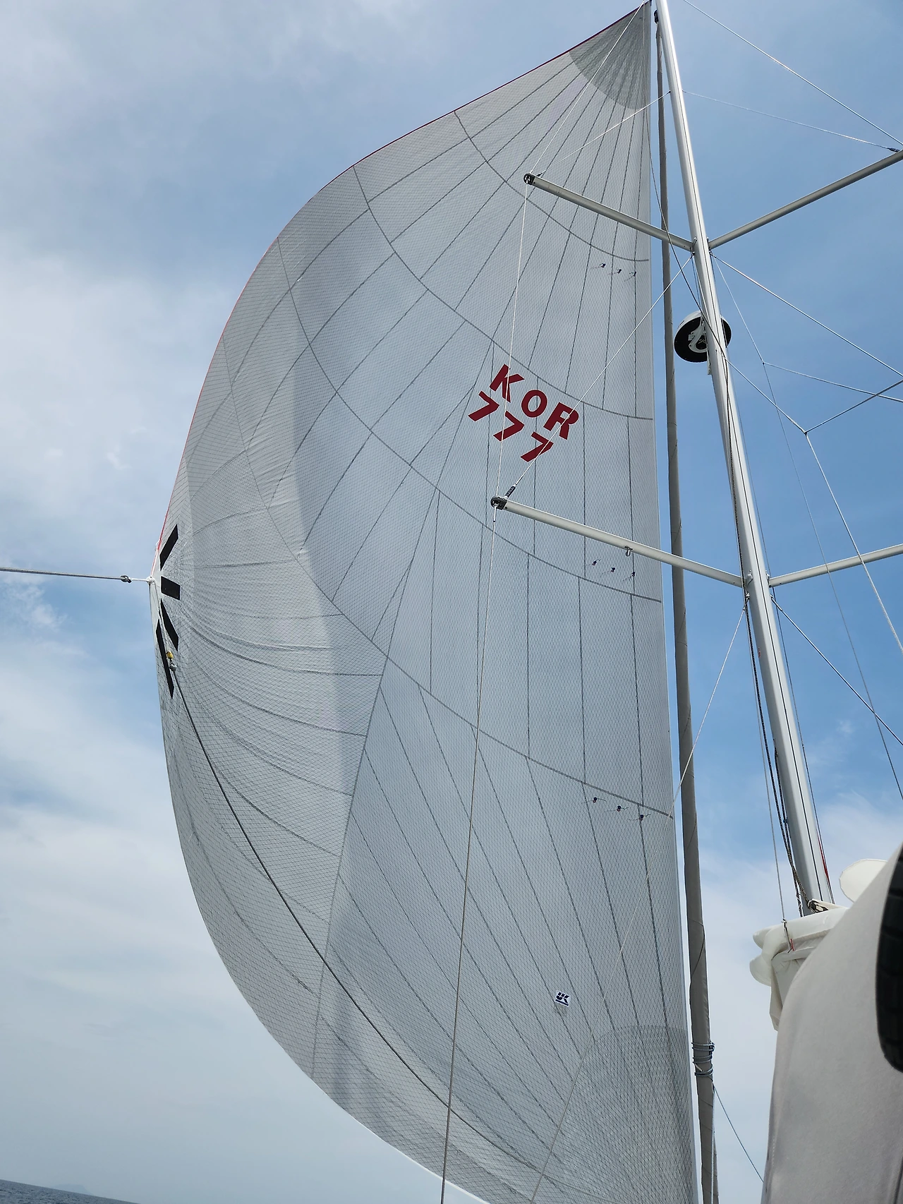탁 트인 하늘을 보며 요드가 출발했다. 1시간 30분을 열심히 달렸다. 가장 장관인 것은 요트의 날개를 펴니 마치 새가 날개를 짝 핀 것처럼 까마득히 높은 돛대를 꼭대기부터 펼쳐진 날개가 장관이다.