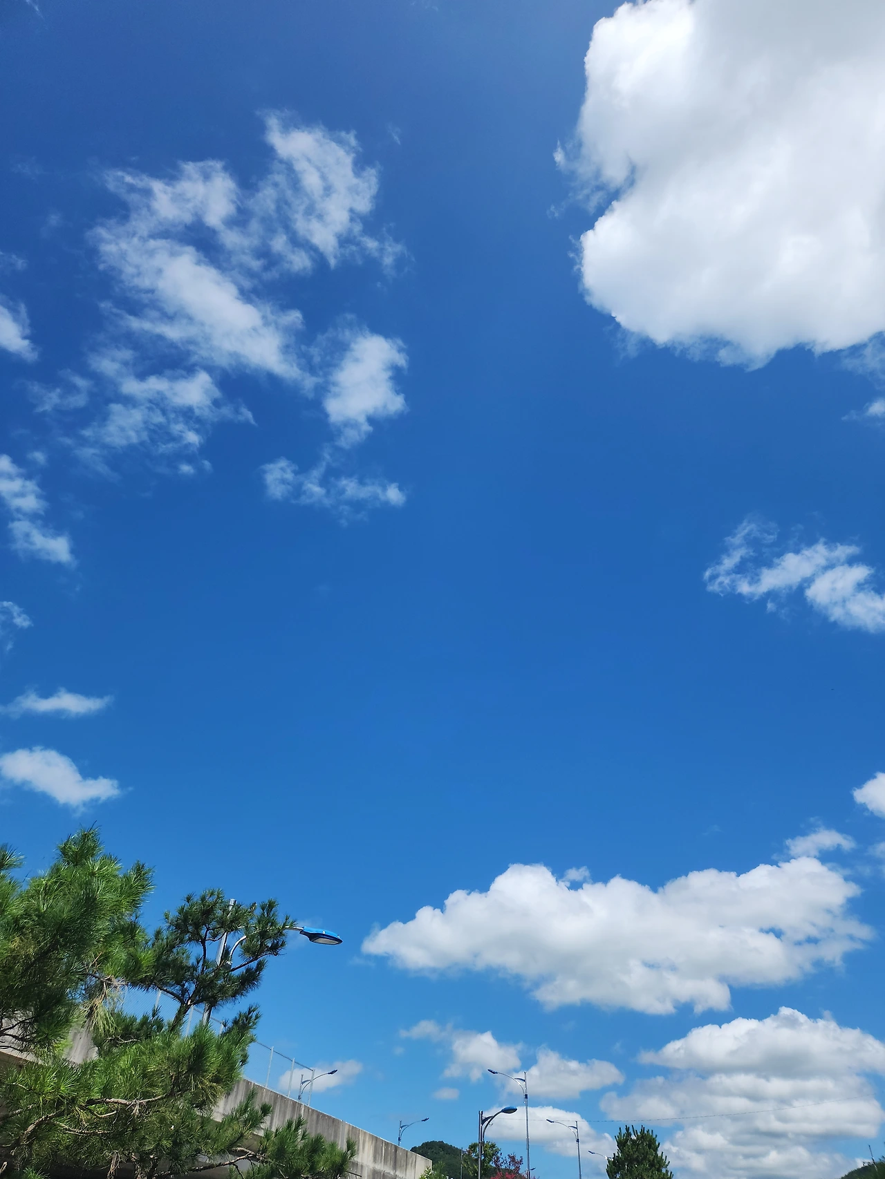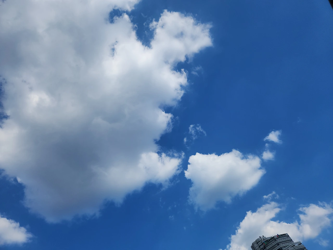 역시나 뭉개구름에 에메랄드 빛 하늘이 펼쳐져 있지만 같은 파란색 하늘이라도 어딘가 모르게더 검은색 쪽으로 더 가 있는 파란하늘을 보게 되었다.