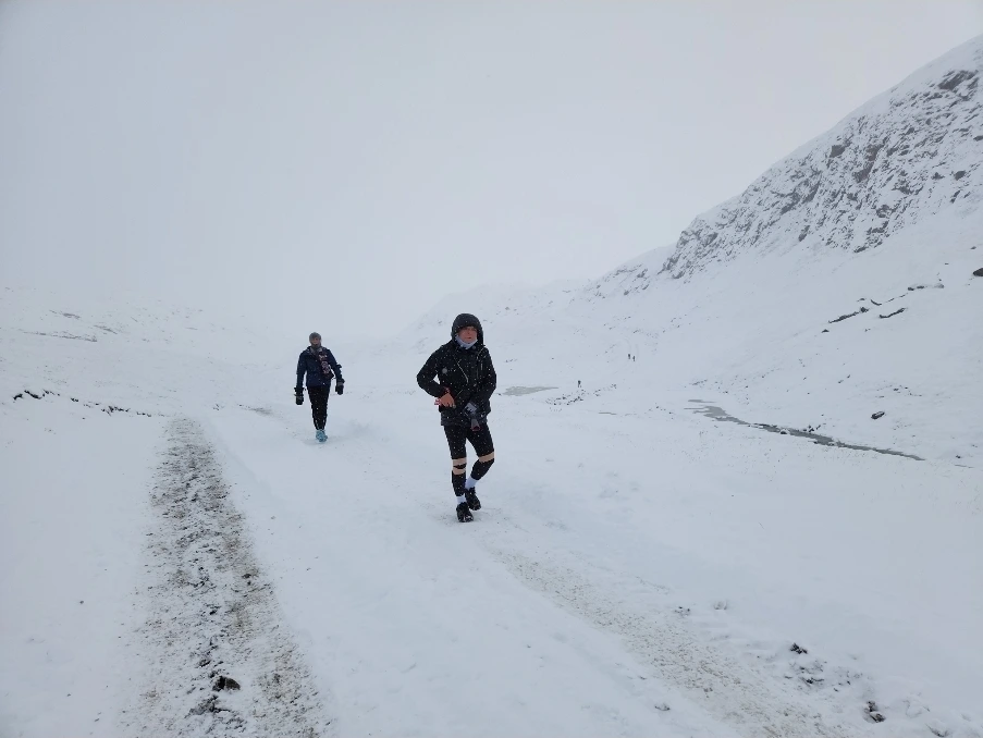 대회날에도 골인하는 시간까지 눈발이 흩날렸다. 참 운이 좋은 게 눈이 온다는 건 기온이 낮지 않다는 것이다.