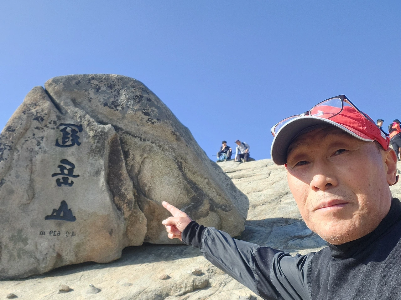 정상 가까이에 갔을때 바위 위 평평한 곳을 찾아서 점프를 했다.