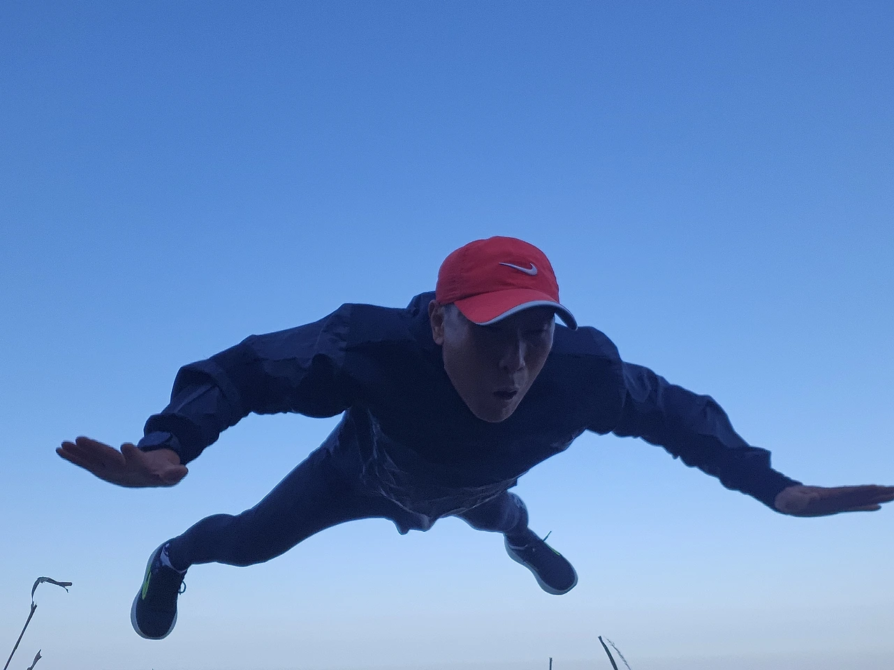 #차한식점프 샷도 찍었고 이번에는 하늘을 날자 싶어서 엎드려 높이 뛰어 올랐다.