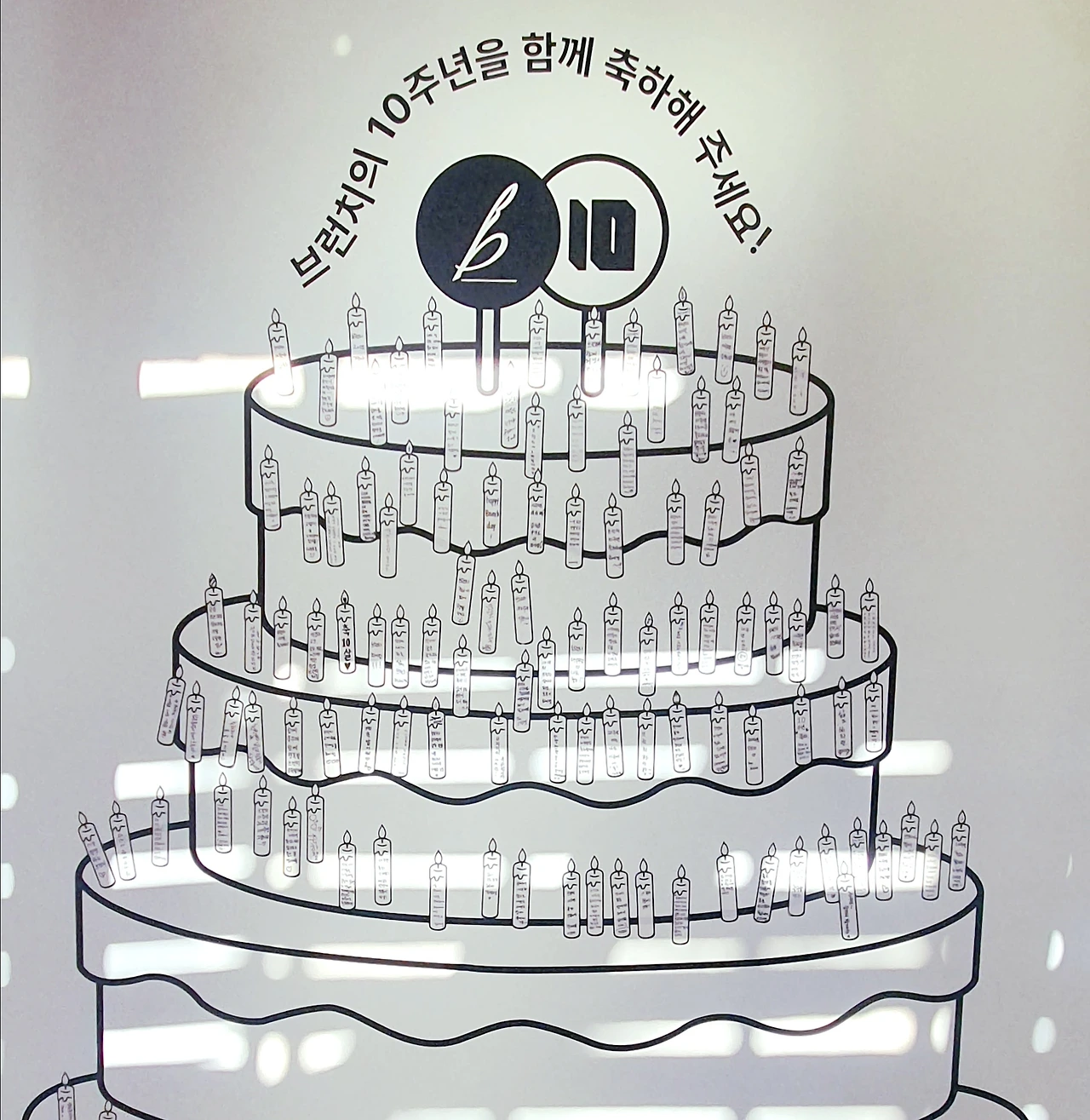 작가님들의 멋진 문장들이 브런치 10주년 케이크에 하나하나 밝은 불빛으로 비추고 있네요.