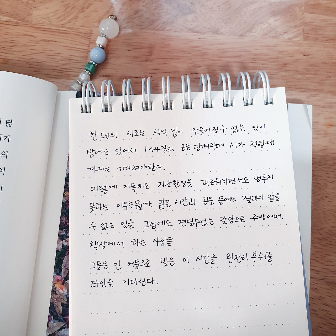 한 편의 시로는 시의 집이 만들어질 수 없는 일이 빵에도 있어서 144장의 모든 담벼락에 시가 적힐 떄까지는 기다려야 한다. 이렇게 지독히도 지난한 일을 괴로워하면서도 멈추지 못하는 이유는 뭘까. 같은 시간과 공을 들여도 결과가 같을 수는 없는 일을, 그럼에도 견딜 수 없는 갈망으로 주방에서 책상에서 하는 사람들. 그들은 긴 어둠으로 빚은 이 시간을 완전히 부숴줄 타인을 기다린다.