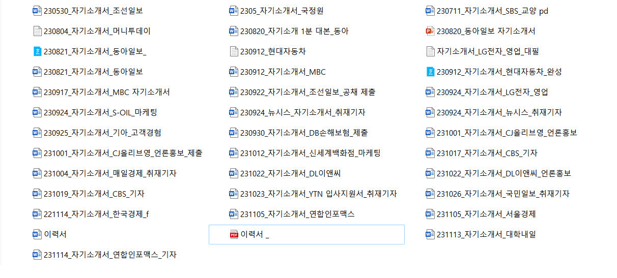 이들의 노트북 파일에 자기소개서가 한가득 했고