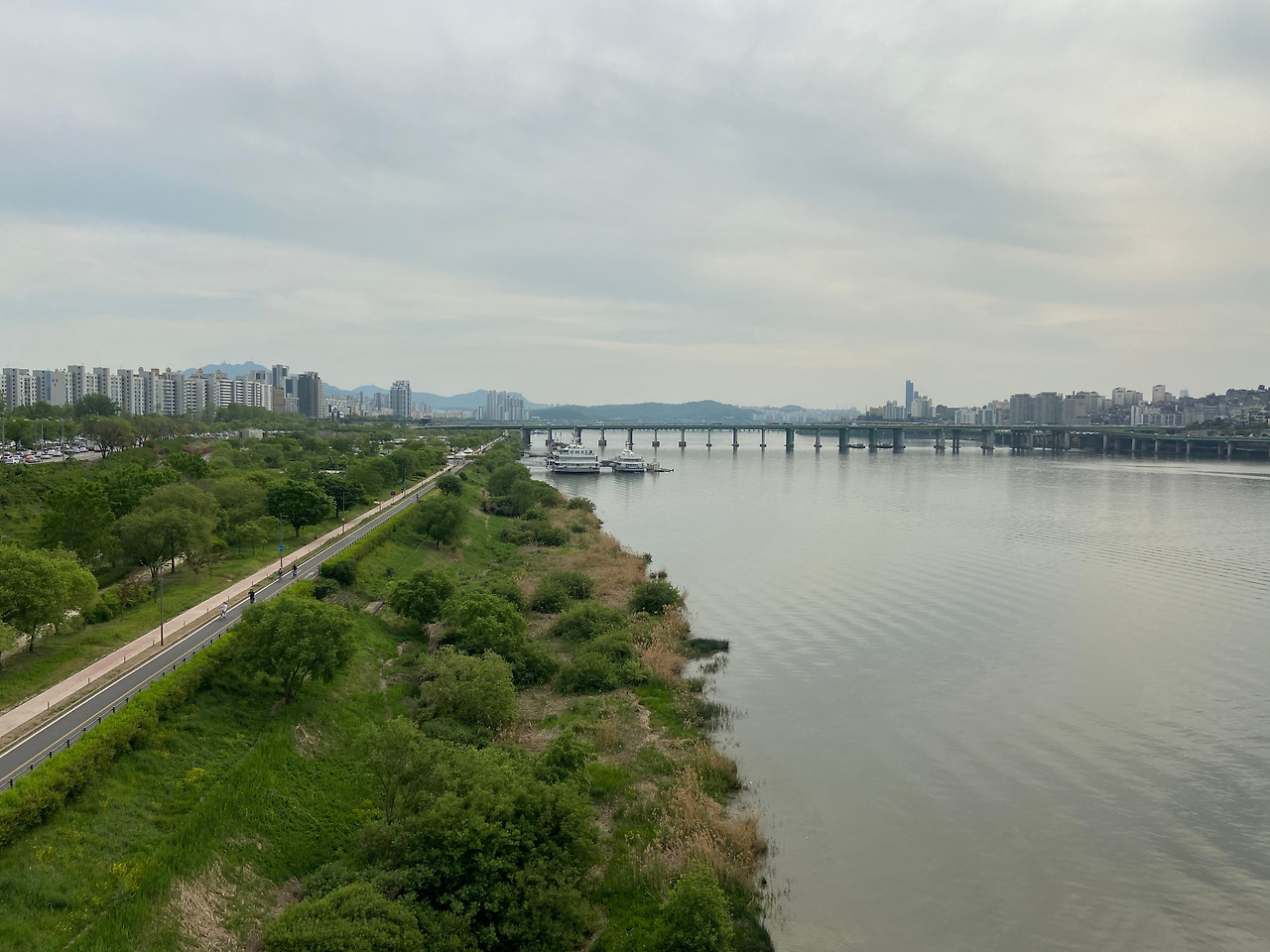 수업이 일찍 끝난 오늘, 유난히 하늘이 맑았다. 도저히 집에 그냥 들어가긴 아쉬운 날씨라 바람이나 쐴 겸 해서 한강공원으로 향했다. 평일 낮 한강은 여유롭고 평화로웠다. 강을 따라 자전거를 타는 사람들, 벤치에 앉아 강아지와 시간을 보내는 사람들, 잔디 위에 삼삼오오 모여 이야기를 나누는 사람들... 모두 웃고 있었고 덩달아 내 마음조차 행복해졌다.