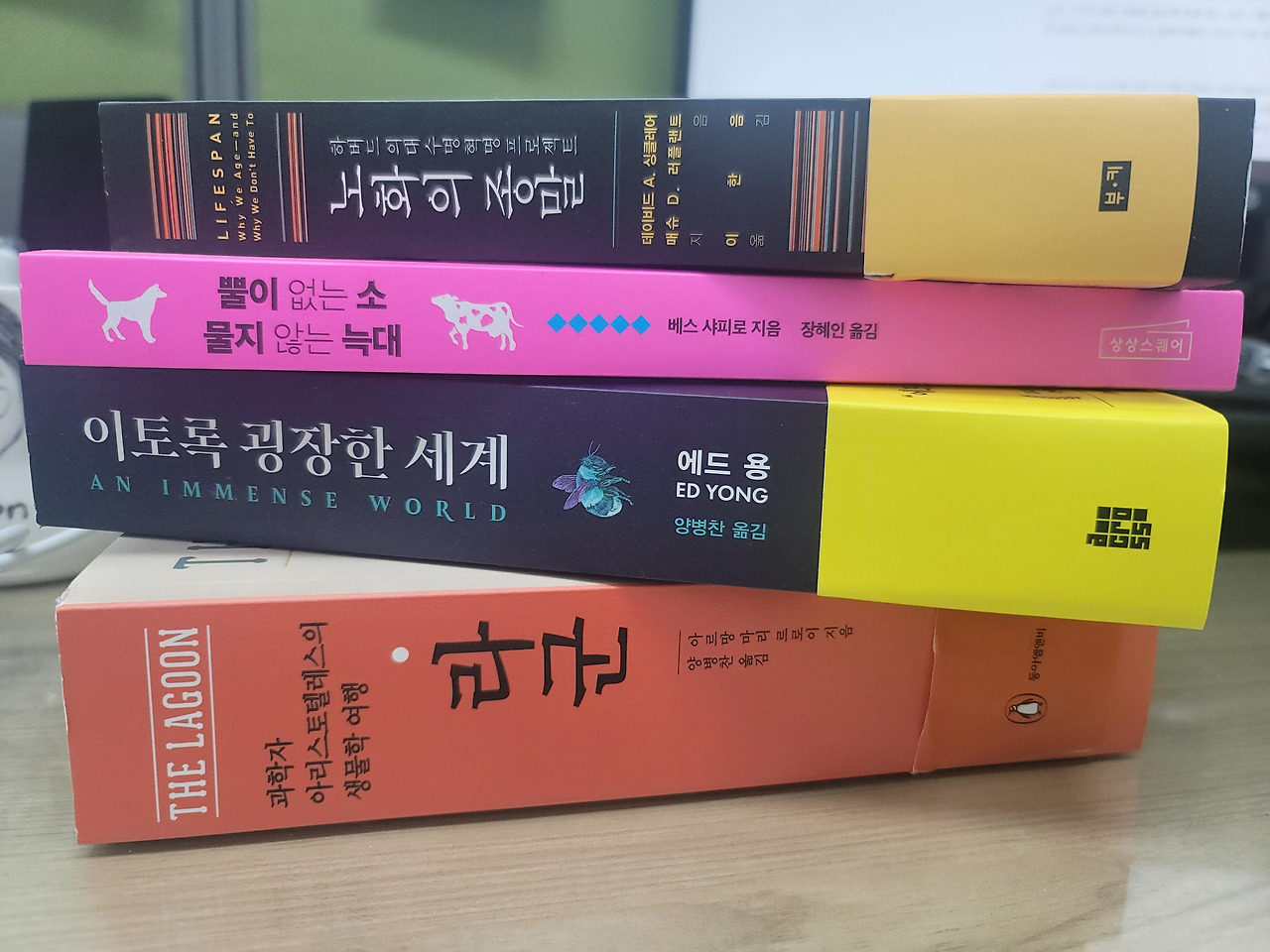 다시 앞에서 말한 이야기로 돌아가서, 내가 여러가지 장르의 책들을 좋아한다고 포괄적으로 대답하긴 하지만 실제로 한 가지 분야에 집중되도록 읽는 경향을 갖고 있다. 나는 자연과학 대중도서들을 좋아하며, 내 전공분야도 좋아하지만 과학에 해당하는 전반적인 모든 분야들에 대해 흥미를 갖고 있다. 자연과학 분야의 대중도서들은 전공자들을 대상으로 하는 책이 아니기 때문에 누구나 읽고 이해할 수 있도록 씌여진 책이다. 물론 해당 분야에 대해 기초적인 지식을 갖고 있다면 더 수월하게 읽을 수 있다. 그 책을 기록한 저자만큼 이해를 하면서 읽을 수는 없겠지만(왜냐하면, 책의 저자들은 한 권의 책이 나오기까지 오랜 기간 자신의 모든 것을 바쳐서 저작을 한다), 포기하지 않고 끝까지 읽으면 마침내는 저자가 의도했던 주제는 파악할 수 있을 것이다.