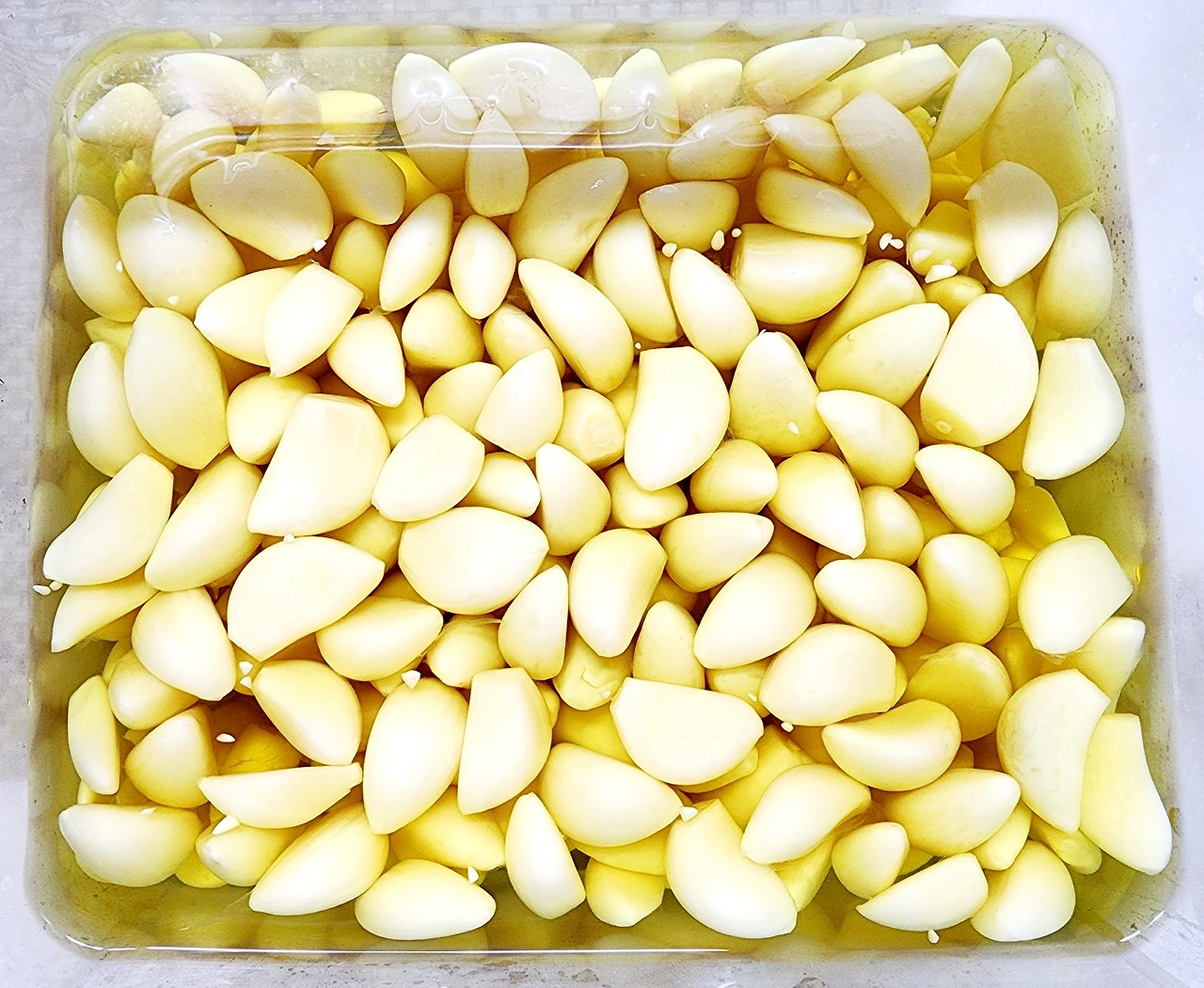 바로 김치 냉장고에 보관을 하고 두 달 후부터 꺼내 먹으면 된다. 깐 마늘 양에 따라 계량된 만큼 소스는 추가하면 된다.