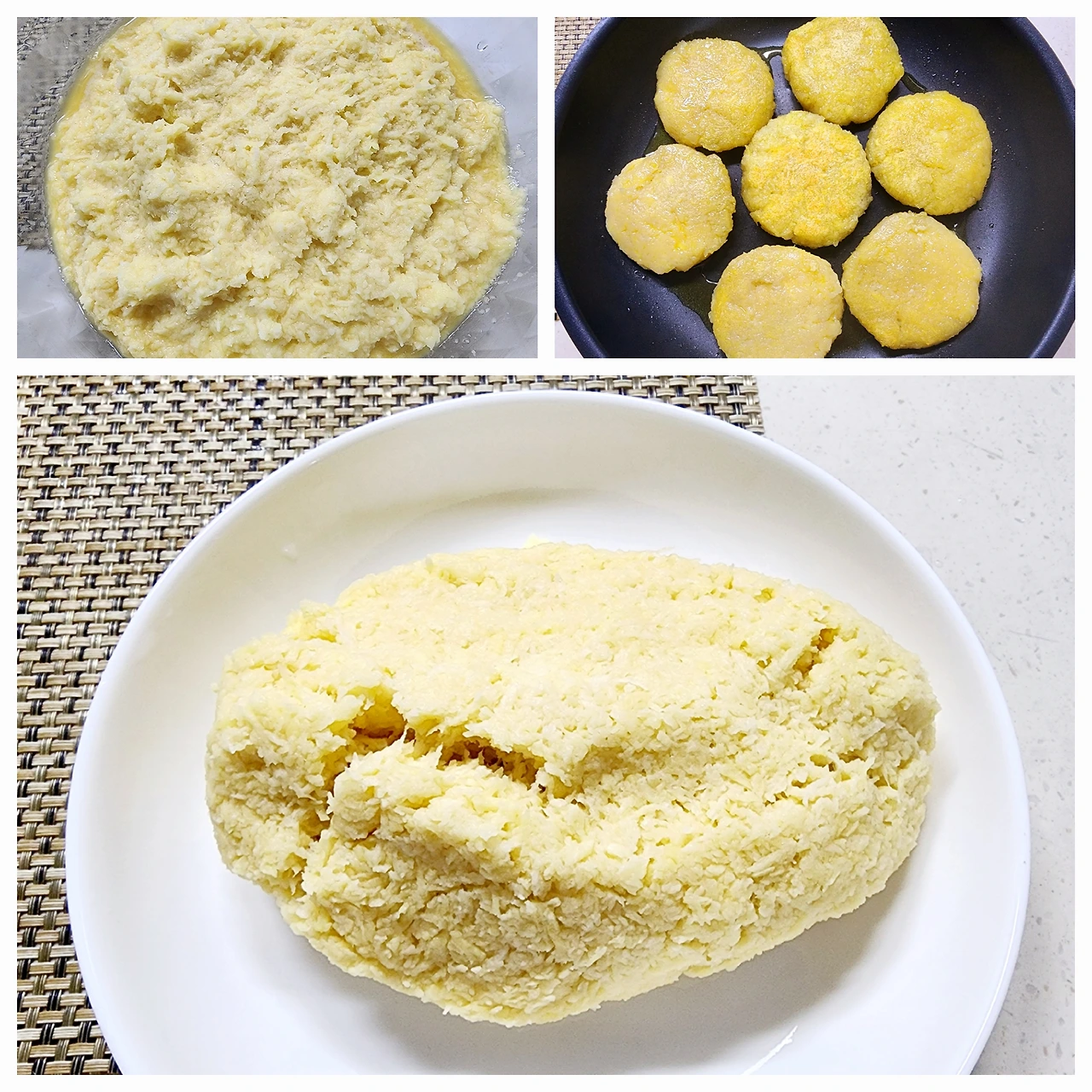 적당한 크기로 둥글게 모양을 만들어서 팬에 기름을 두르고 노릇하게 지져내면 완성이다.