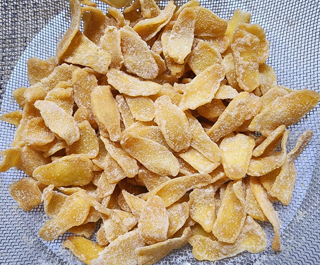 소쿠리에 두고 흔들어서 잔설탕을 제거하면 깨끗하고