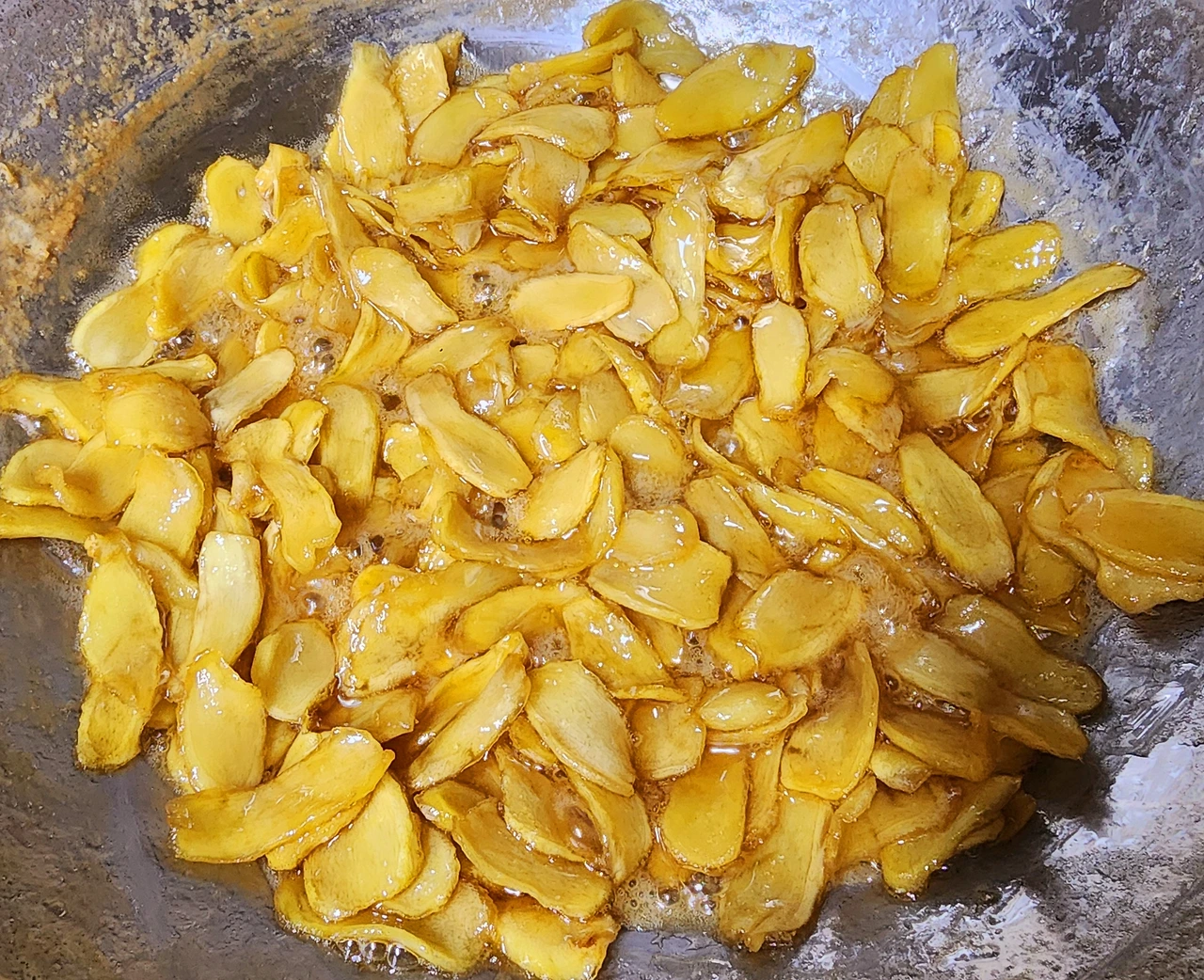 어느 정도 졸이다 보면 생강에서 수분이 날아가고