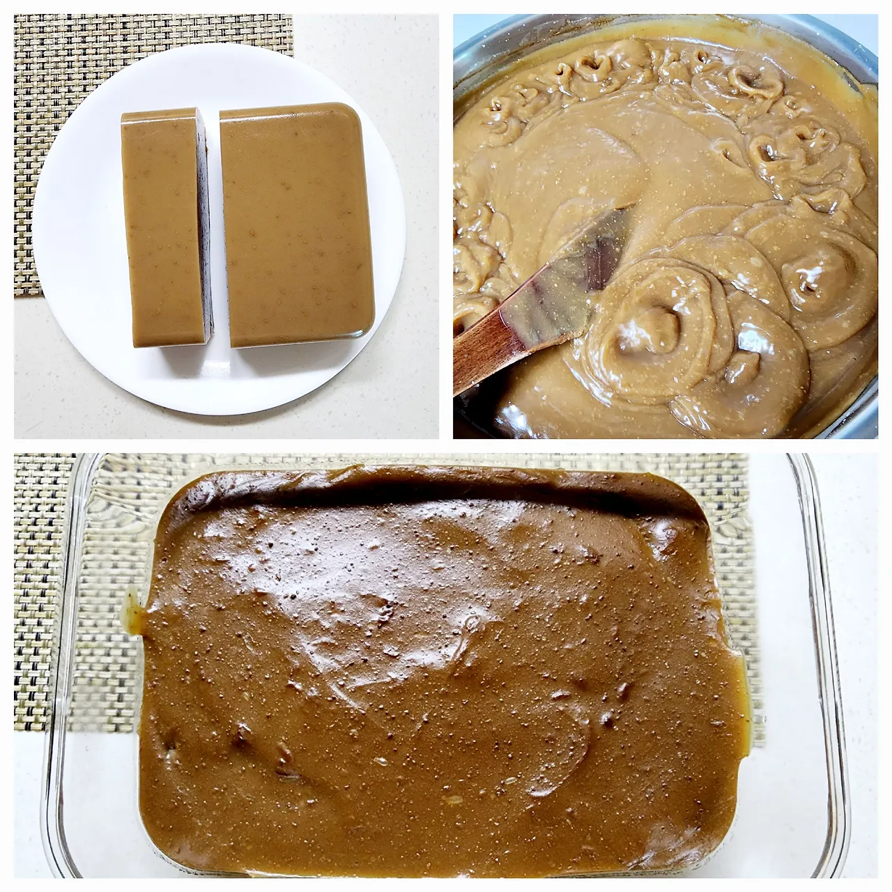 그리고는 사각 유리그릇에 담는다 하루정도 식히면 완성된다