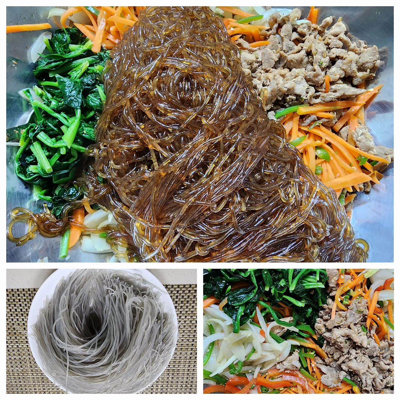 (절대 당면은 물에 풍덩 담가서 삶고, 물에 씻지 말 것 물에 씻으면 잡채를 다해놓으면 불어 터짐 )
