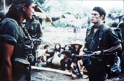 <플래툰>은 '반즈'라는 나쁜 놈과 '엘리아스'라는 착한 놈이 전장에서 벌이는 갈등을 집중적으로 다루고 있지만, 그보다 주목할 점은 이 영화가 미군들을 보여주는 방식이다. 그동안의 영화가 언제나 정의로운 '캡틴 아메리카'형 미군의 모습만을 보여줬다면, 이 영화에서는 난폭, 비이성, 잔혹한 미군의 실상이 드러난다. 민간인들을 서슴없이 죽이고 강간하기까지 하는 그들의 모습은 규율도 없고 폭력적이라는 말조차 무색할 만큼 잔인하다. 정의로운 인간의 상징으로 나오는 엘리아스 또한 베트남인의 시선으로 보면 그저 '덜 나쁜 놈'에 불과하다.
