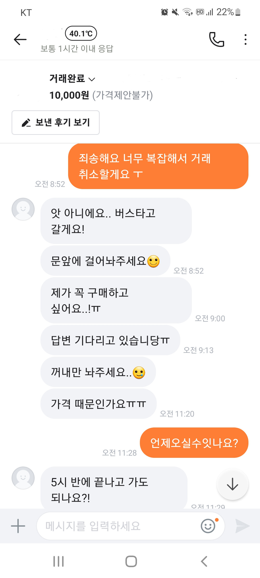 물건의 가격을 깎아달라고 했는데 나는 주저 없이 물건의 가격을 깎았다. 남편의 말대로 시간과 노력 또한 재산이다. 계속 애타게 물건을 구매하고 싶다는 메시지로 더 이상 신경 쓰고 싶지 않았다.