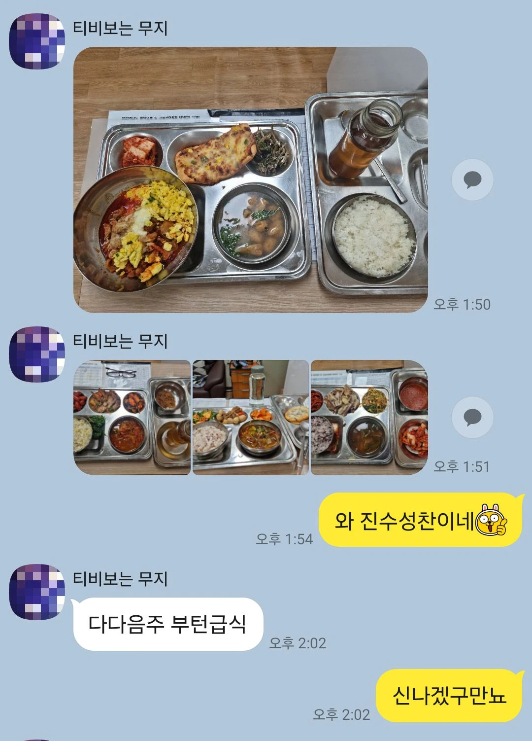 아빠는 가족 단톡방에 급식 사진을 올렸다. 매일 올라오는 급식 사진은 어쩐지 귀찮지가 않았다.