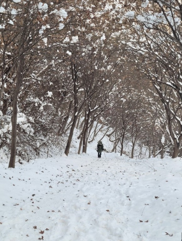 눈이 올 때 산은 어디든 바로 가면 다 이쁘다. 헌데 이번엔 눈 온 뒤 날씨가 추워 산에 있는 눈들이 다 얼면서 아직도 장관을 이루고 있었다. 늦게 간 탓에 정상까지 가기는 무리가 있었다. 해도 곧 떨어질 것 같고 칼바람이 살을 에이는 듯했다.